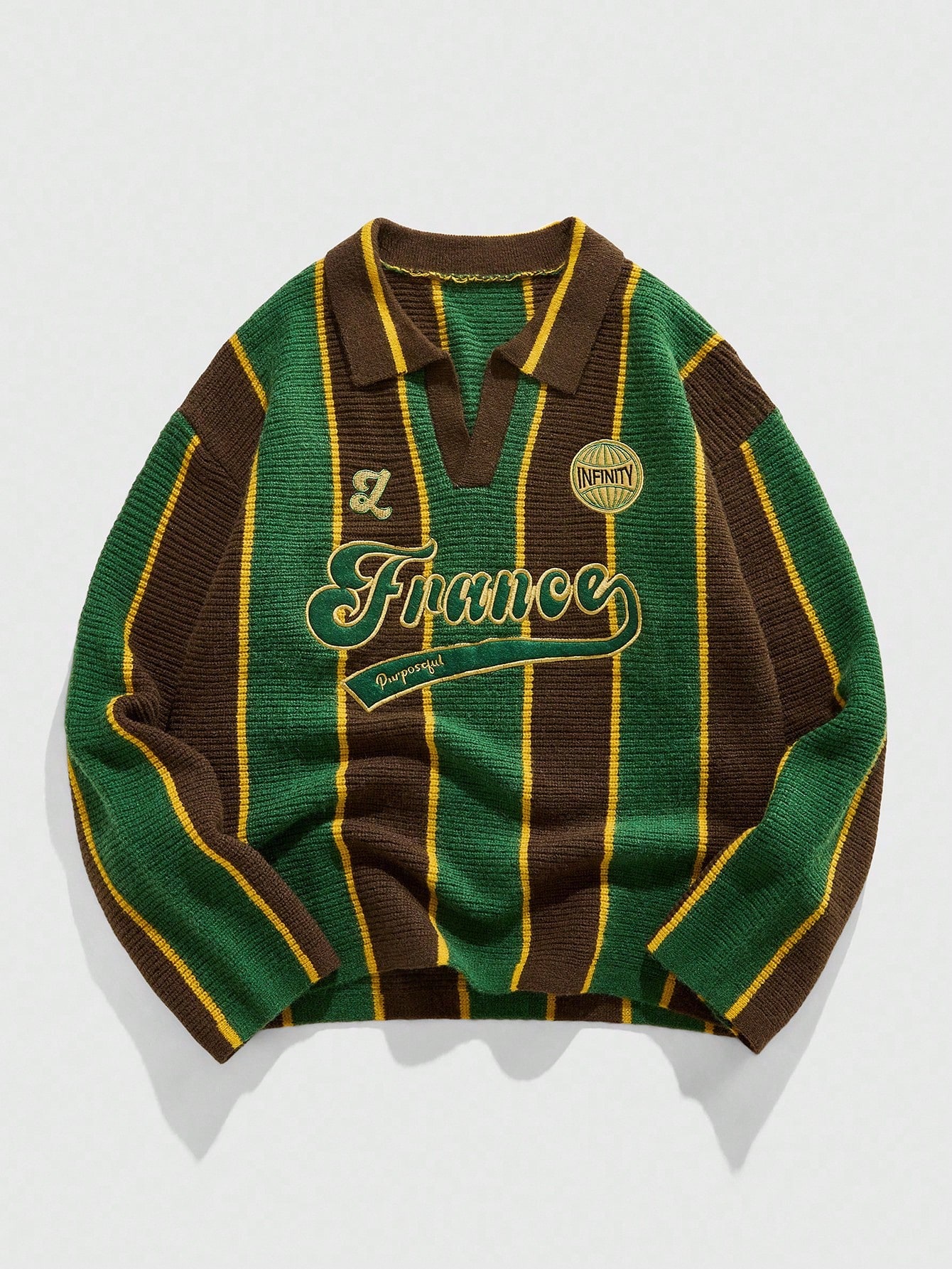 Prep Jersey de punto con cuello retro inspirado en el fútbol para hombre, otoño e invierno