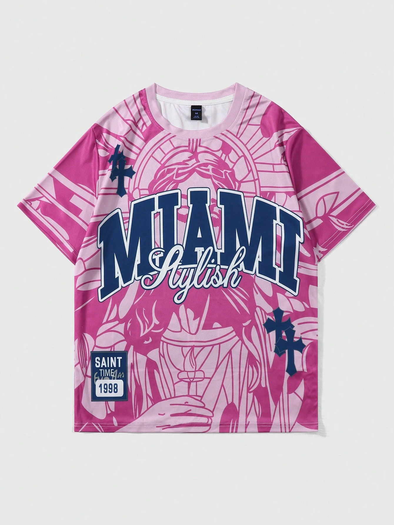 Prep Camiseta de manga corta con estampado de eslogan para hombre, adecuada para el uso diario en primavera/verano