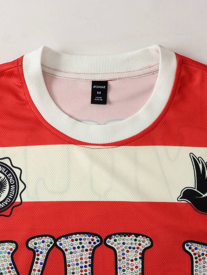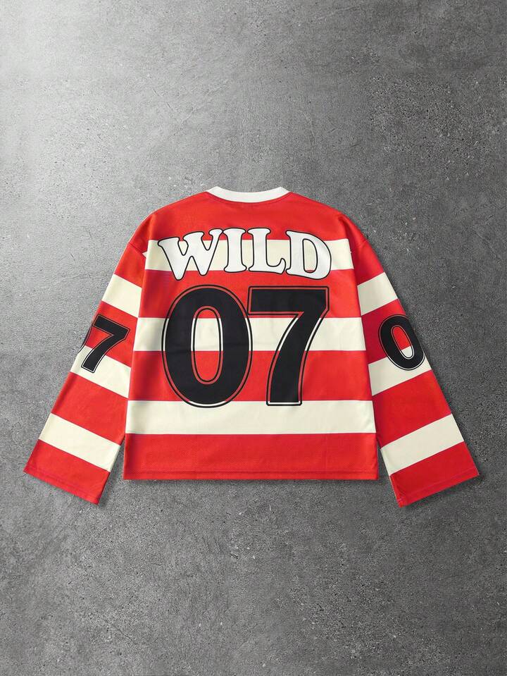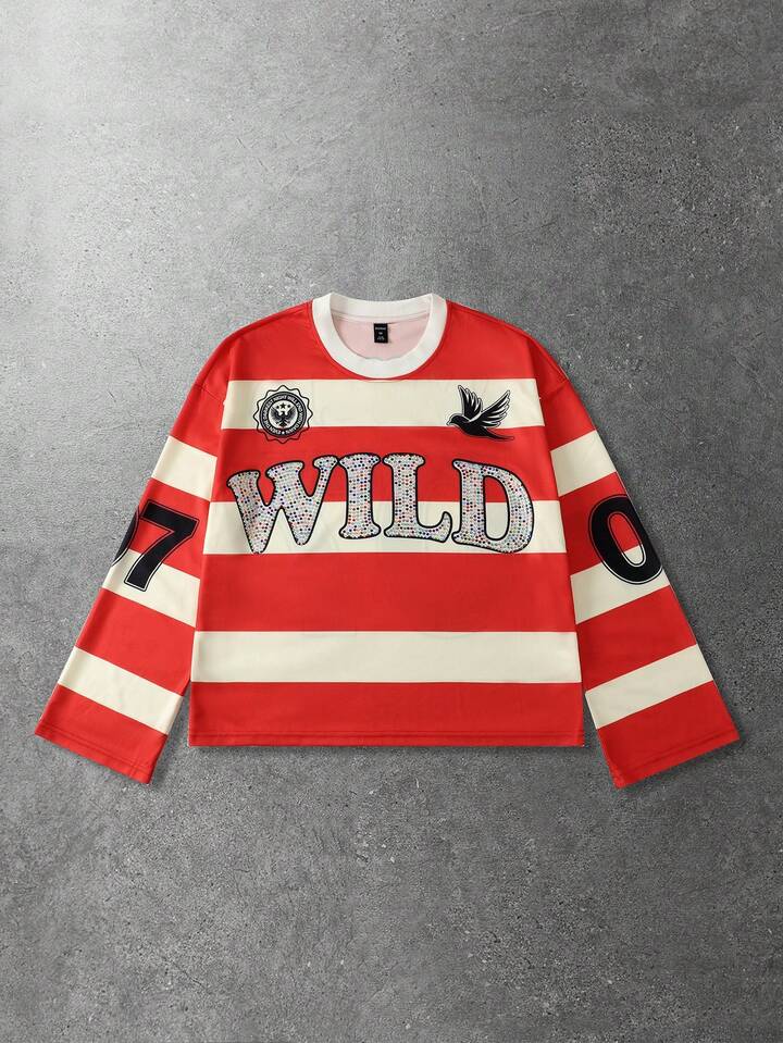 Prep Camiseta de manga larga con estampado de diamantes brillantes y rayas para hombre