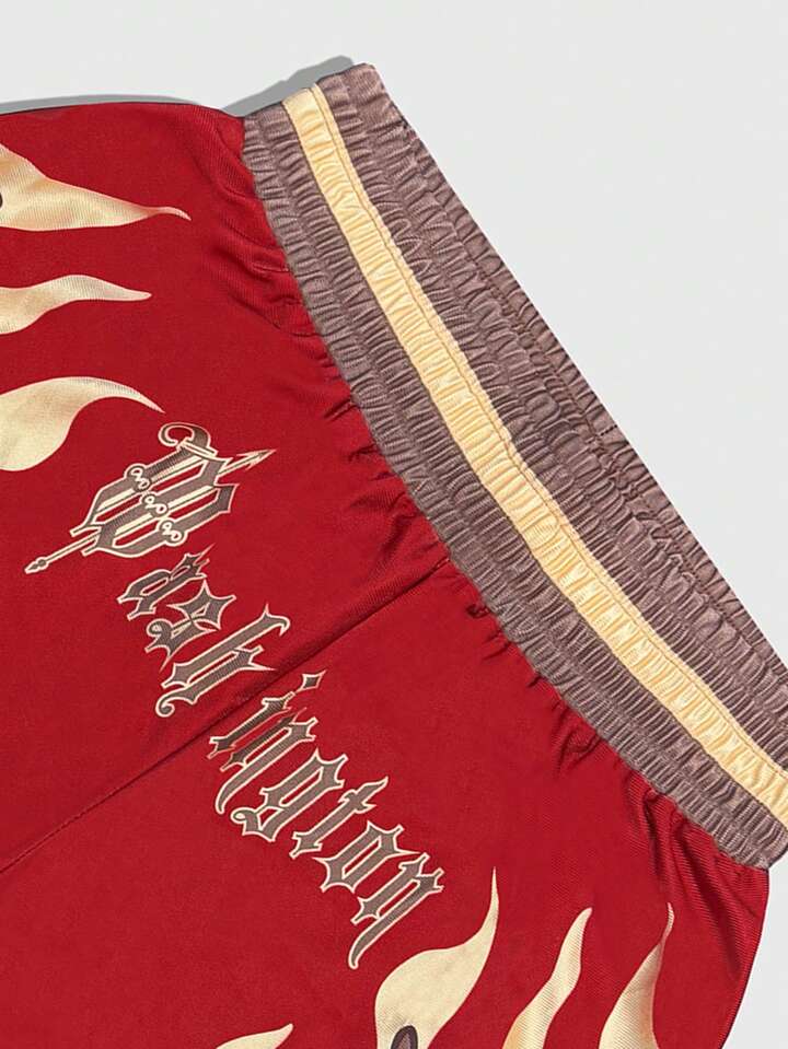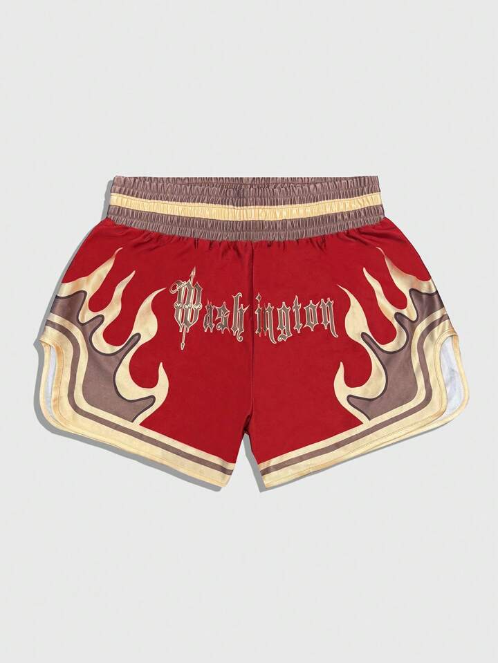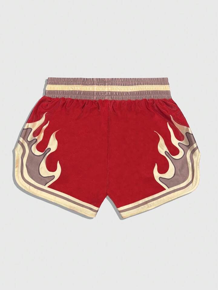 Prep Pantalones cortos casuales de verano con cintura elástica e impresión de llamas para hombres