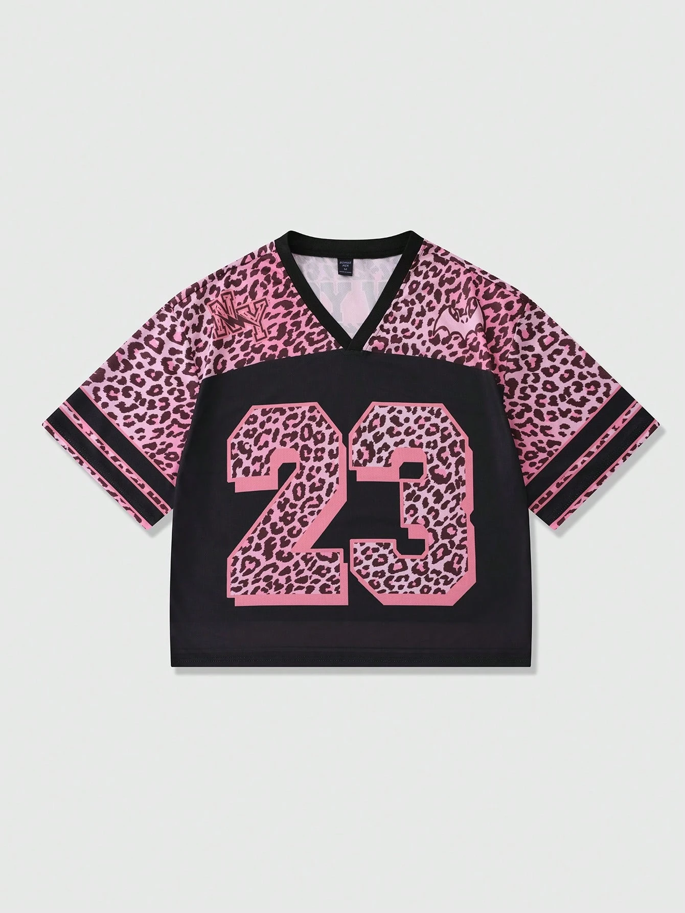 Prep Camiseta de cuello en V con estampado de leopardo y parches de malla para hombres, primavera/verano