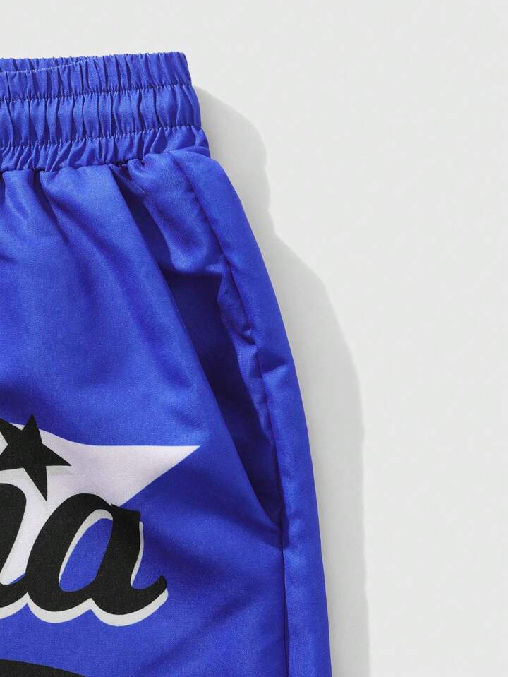 Prep Pantalones Cortos Para Hombre Con Estrellas E Impresión De Letras, Perfectos Para Uso Diario En Primavera Y Verano