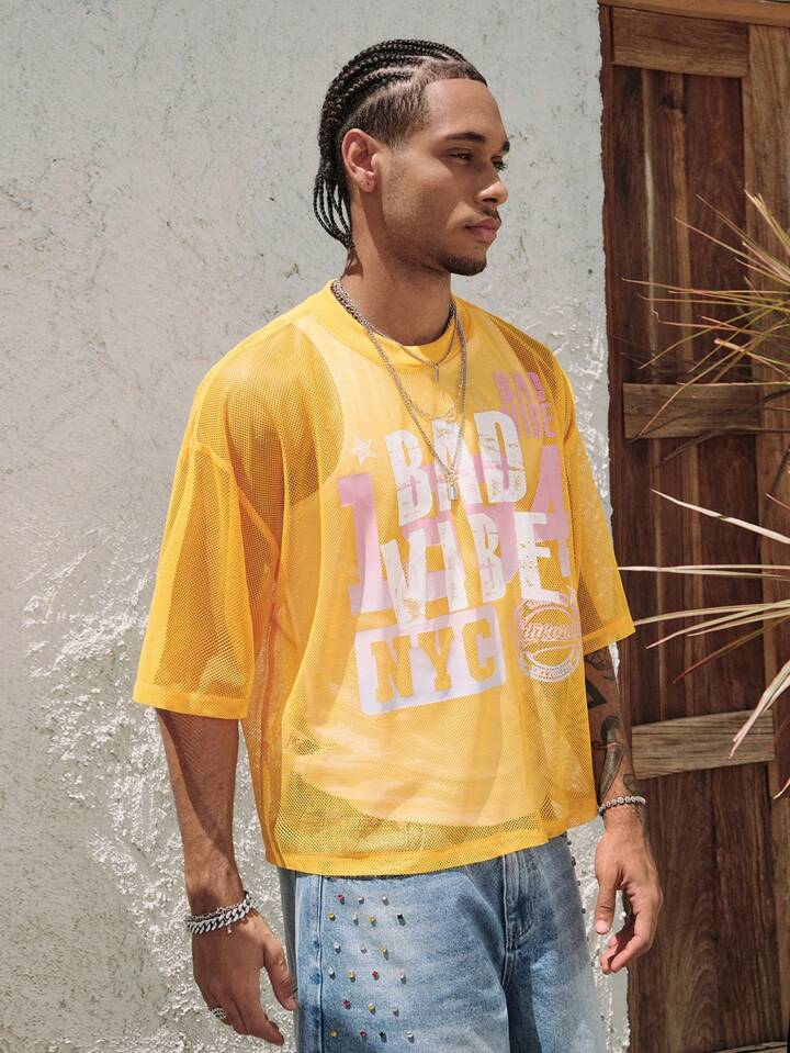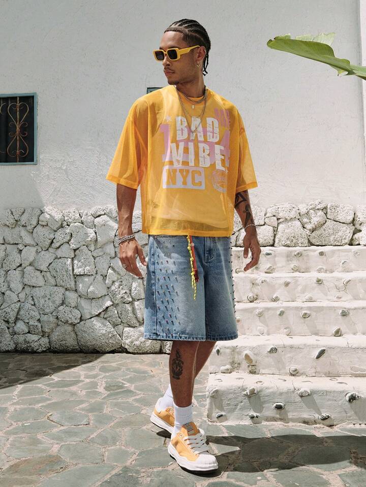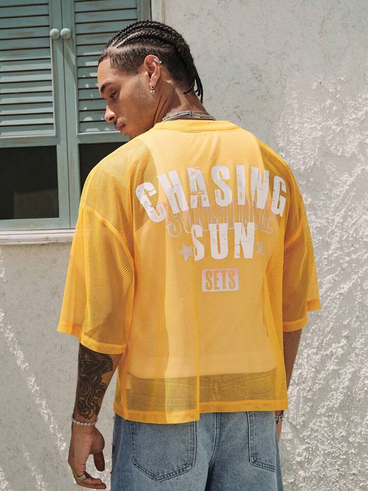 Prep Camiseta de manga corta casual y versátil con estampado de letras para hombres, para el verano
