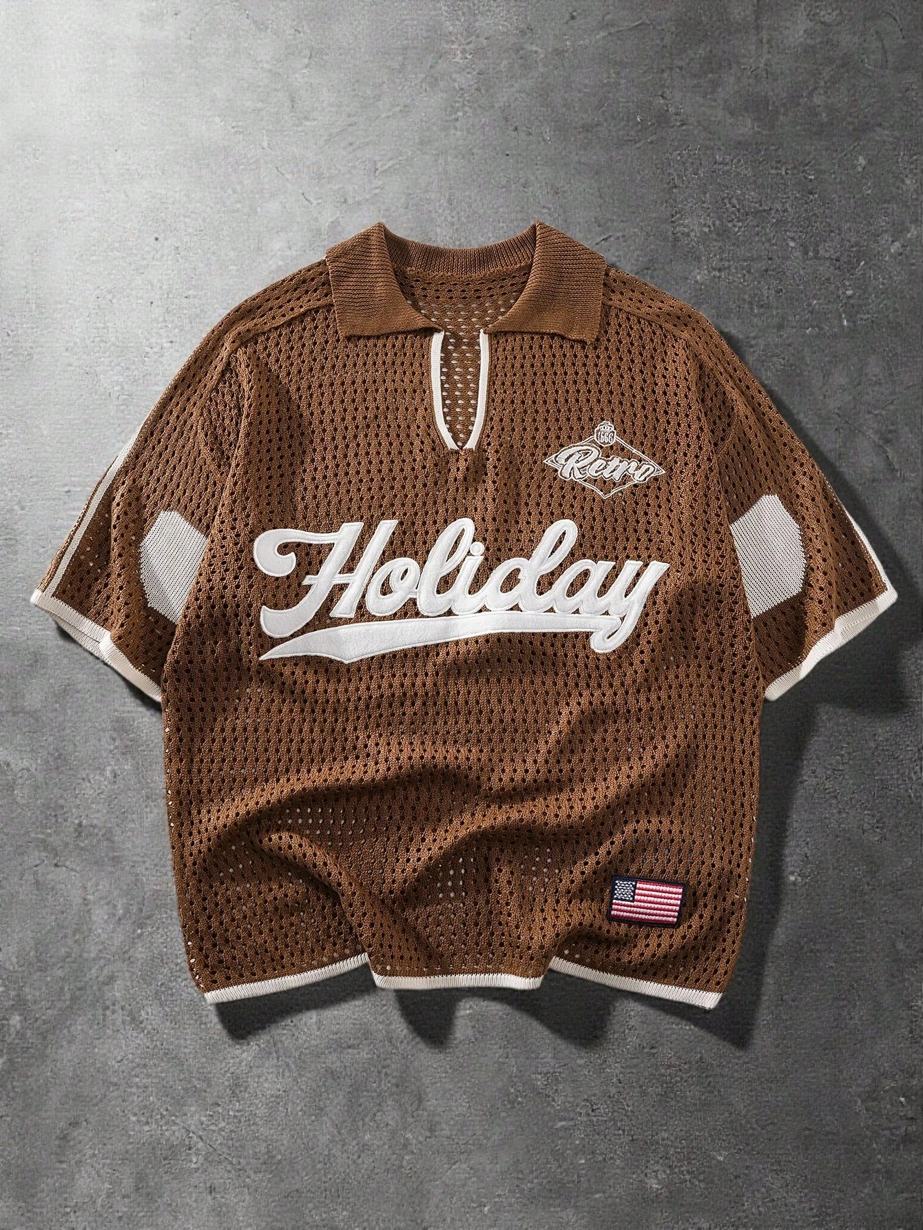 Prep Suéter de punto bordado con estilo universitario para hombre