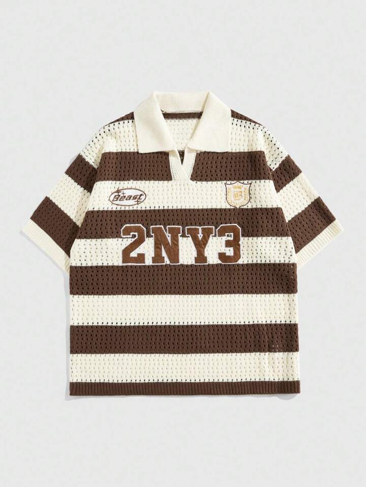 Prep Jersey de punto tipo polo con bordado de letra y rayas para hombre