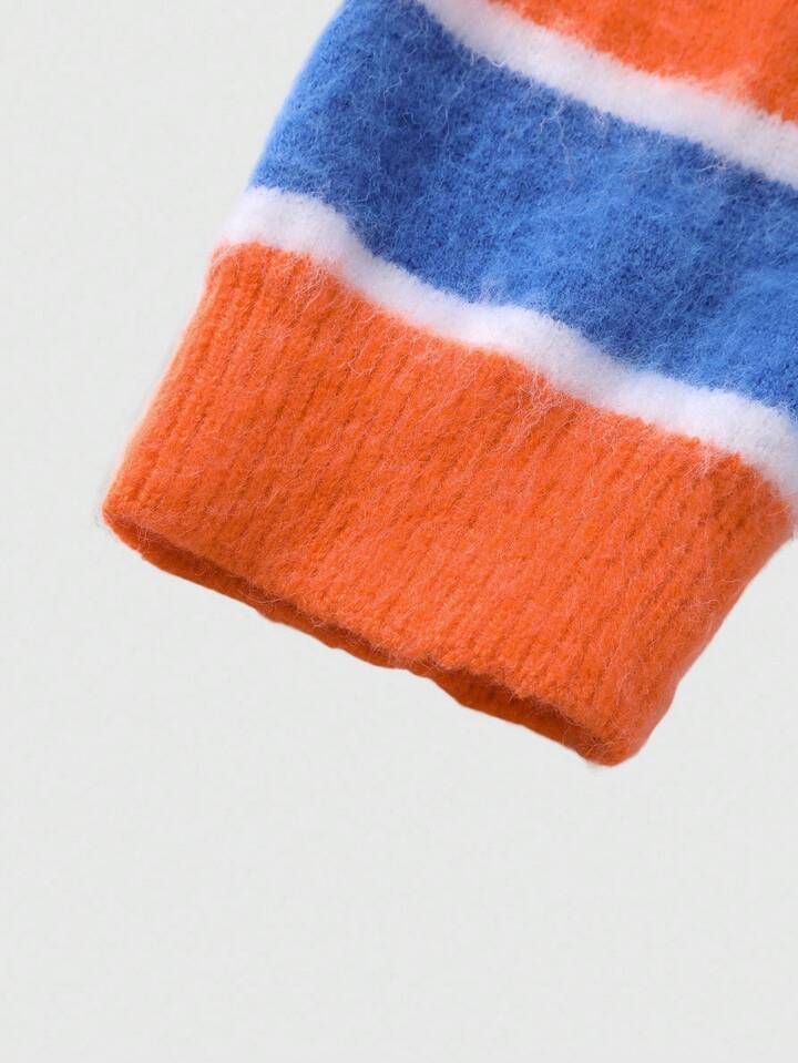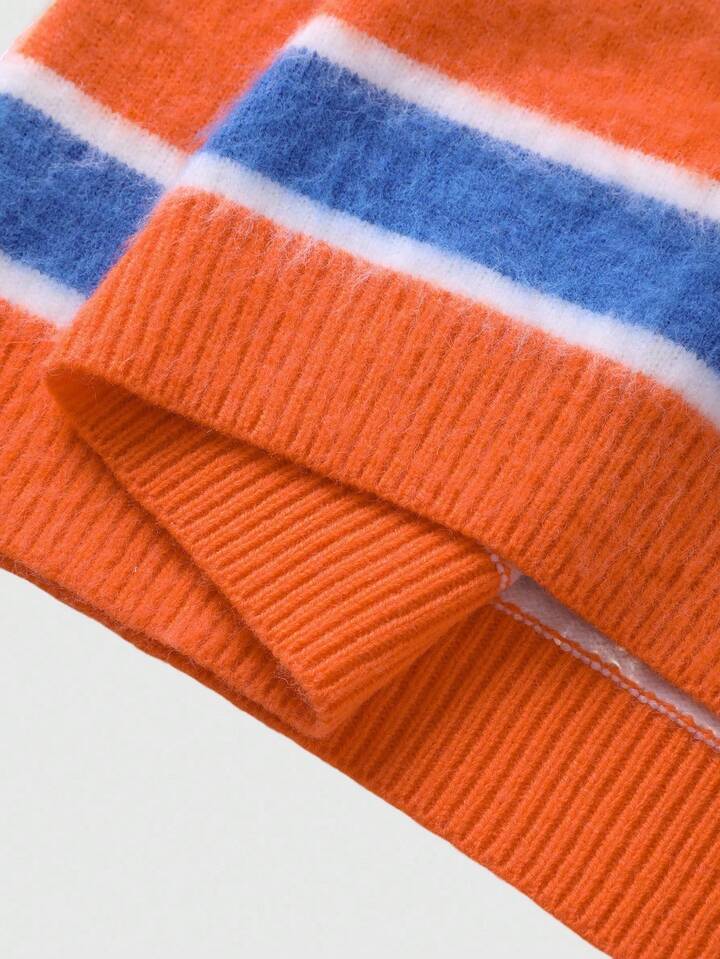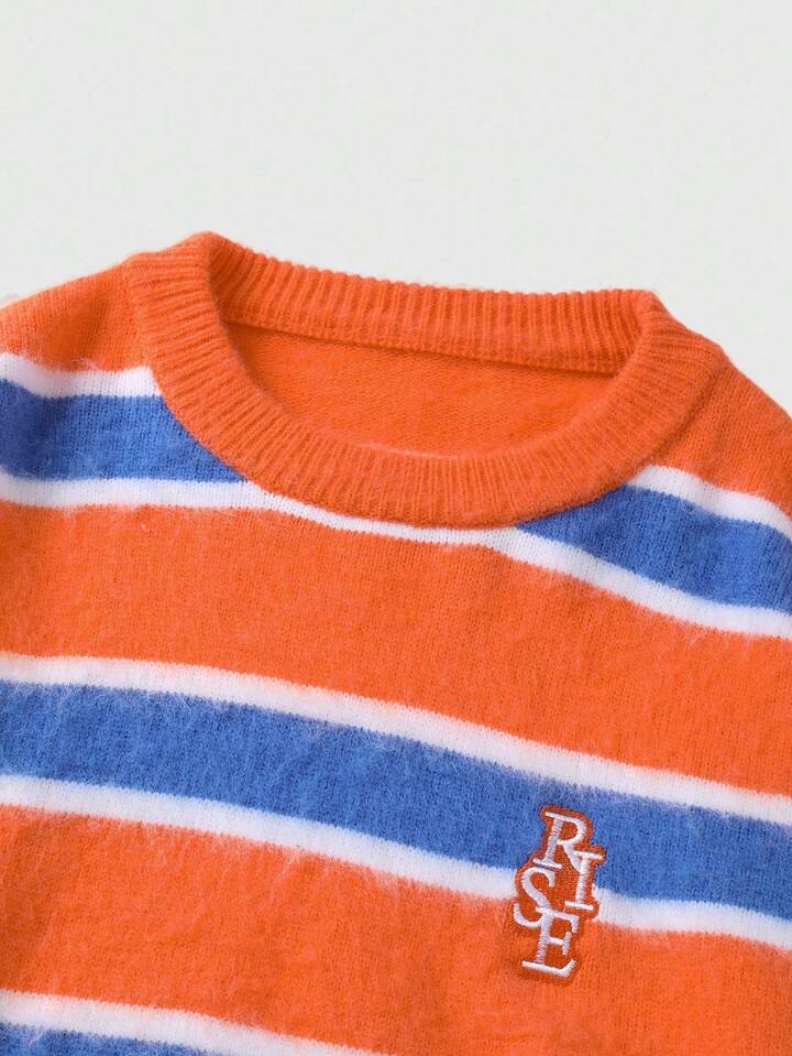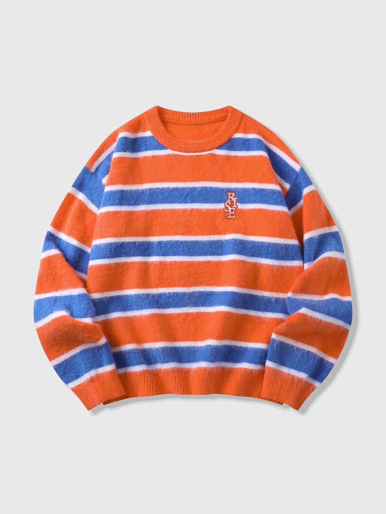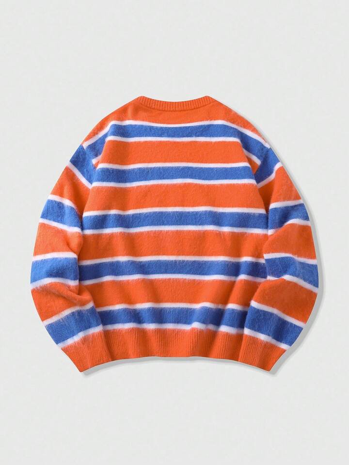 Prep Jersey de manga larga a rayas para hombre, corte holgado y acortado, otoño e invierno