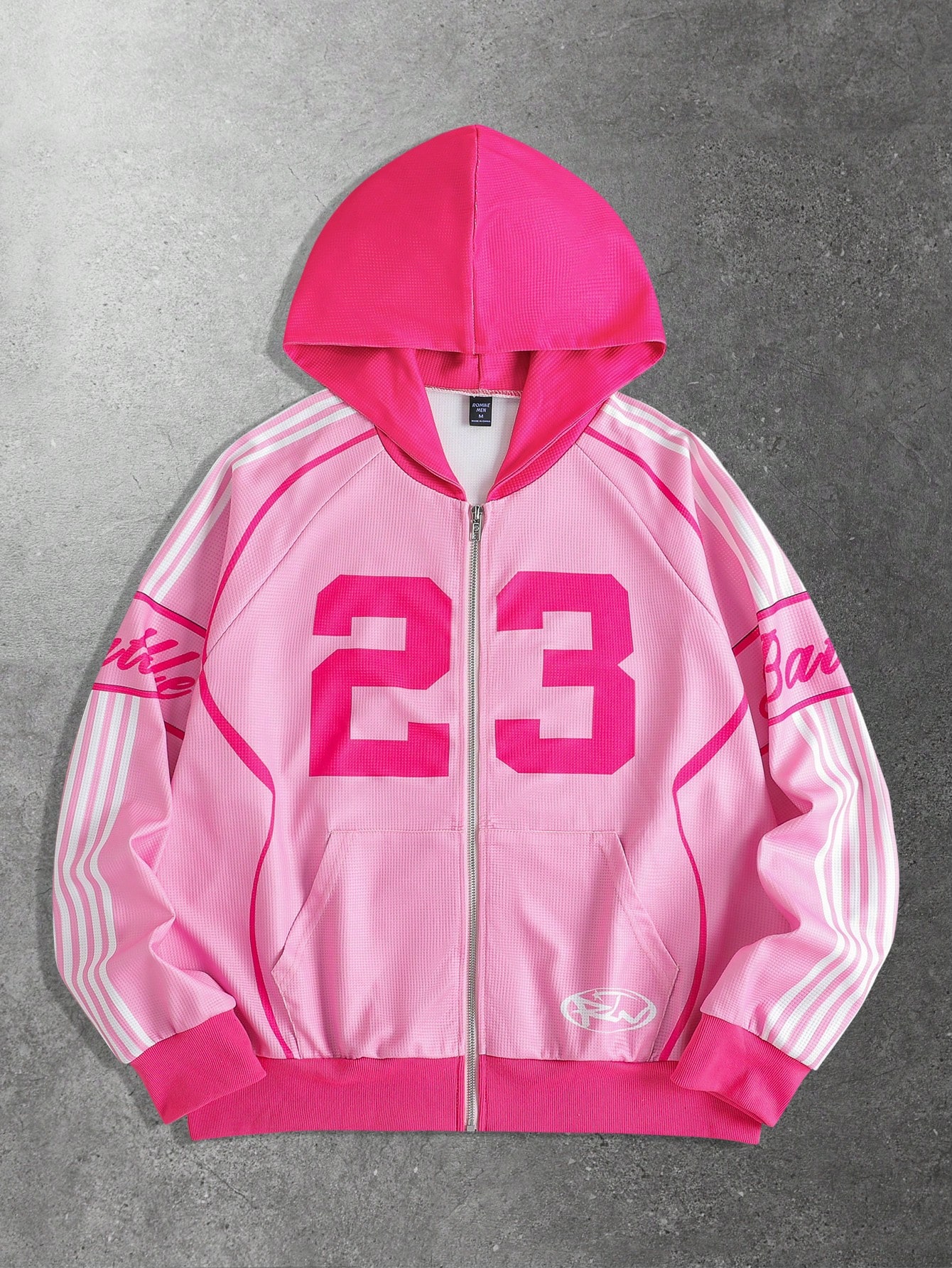 Prep Sudadera casual con capucha, cremallera y mangas largas con rayas y estampado de color contrastante para hombre