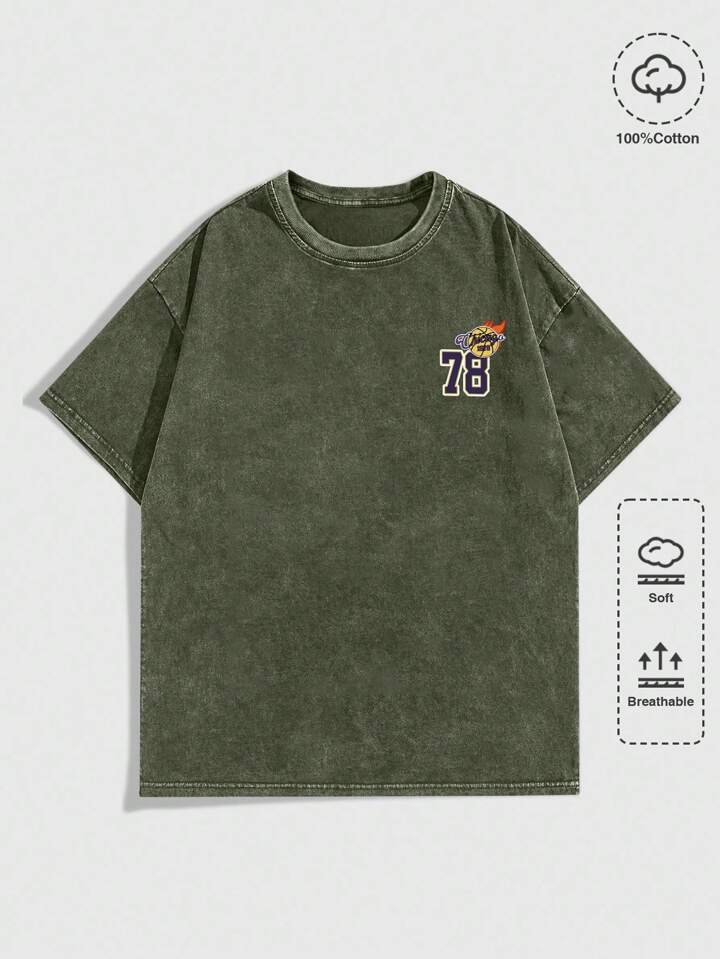 Prep Camiseta de baloncesto estampada, lavada, de estilo casual de verano para hombres