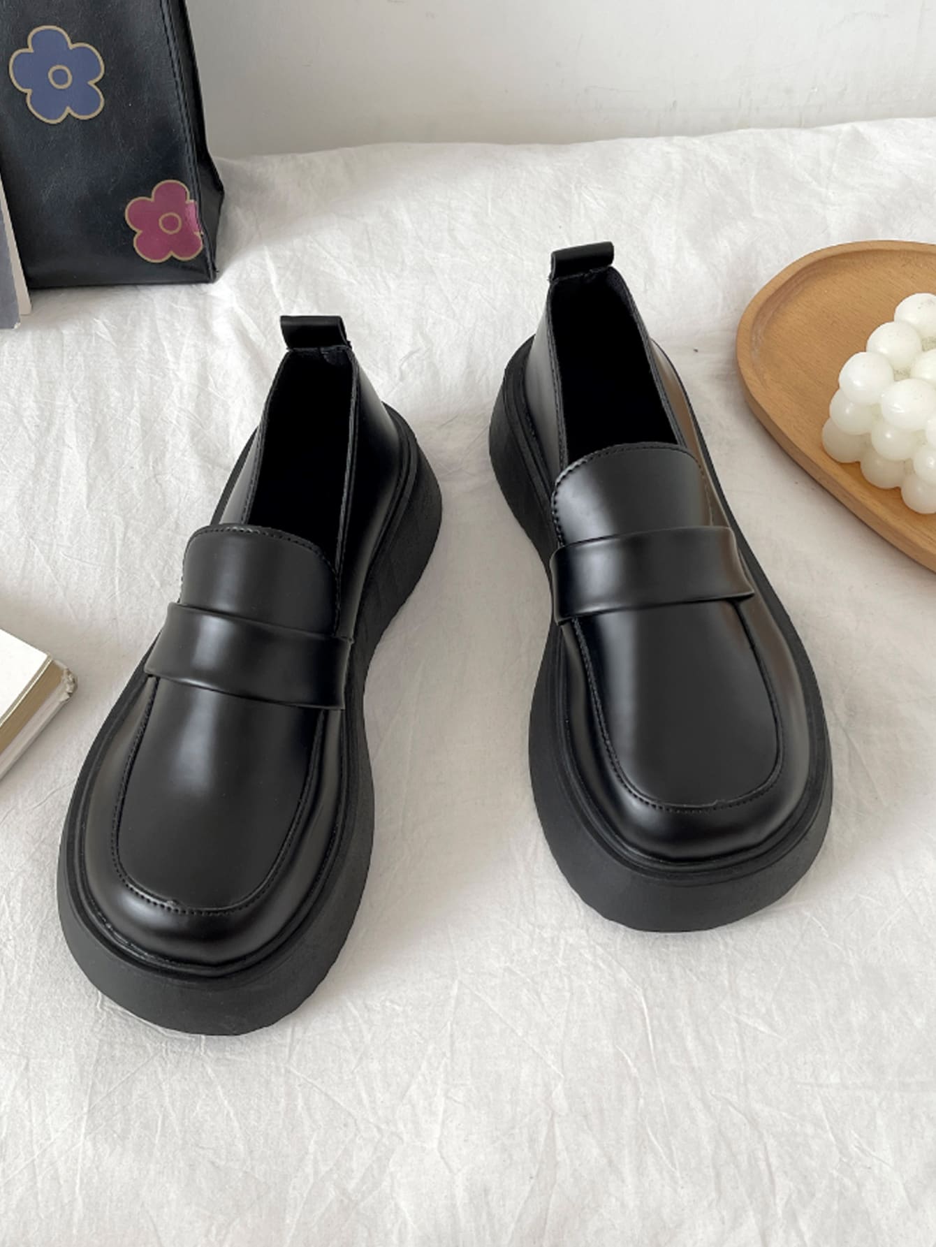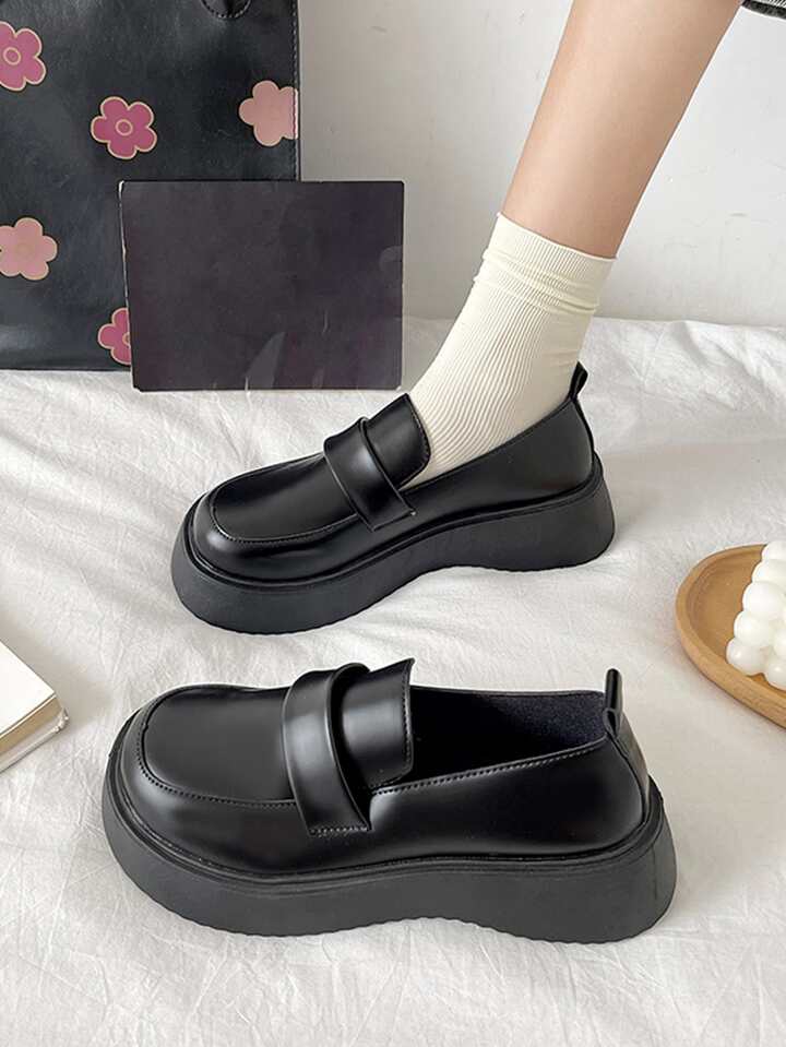 preppy negro Zapatos mocasines para con diseño de puntada plataforma Zapatos