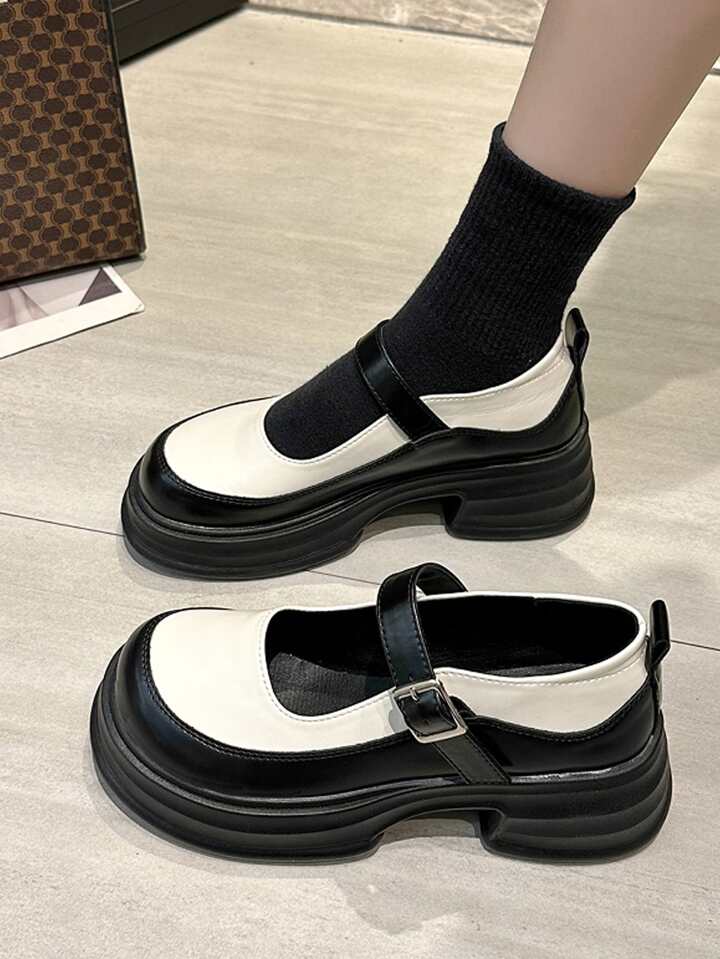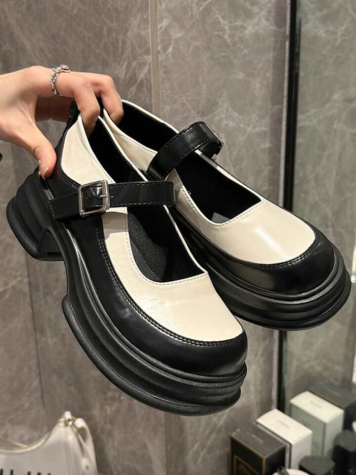 preppy Zapatos mary jane para de dos tonos plataforma Cuñas Zapatos