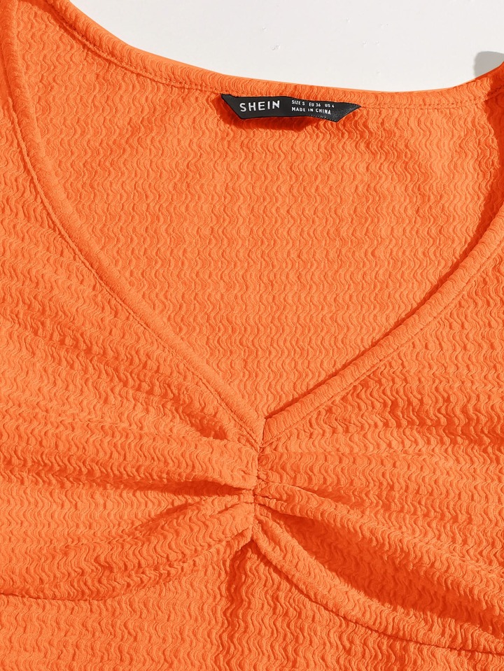 Top corto de manga farol pecho con fruncido