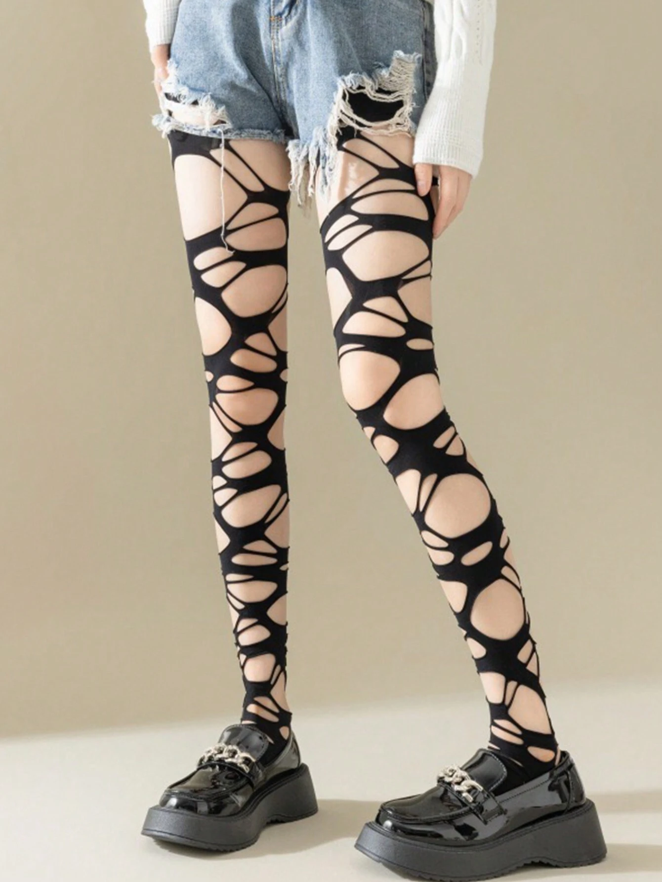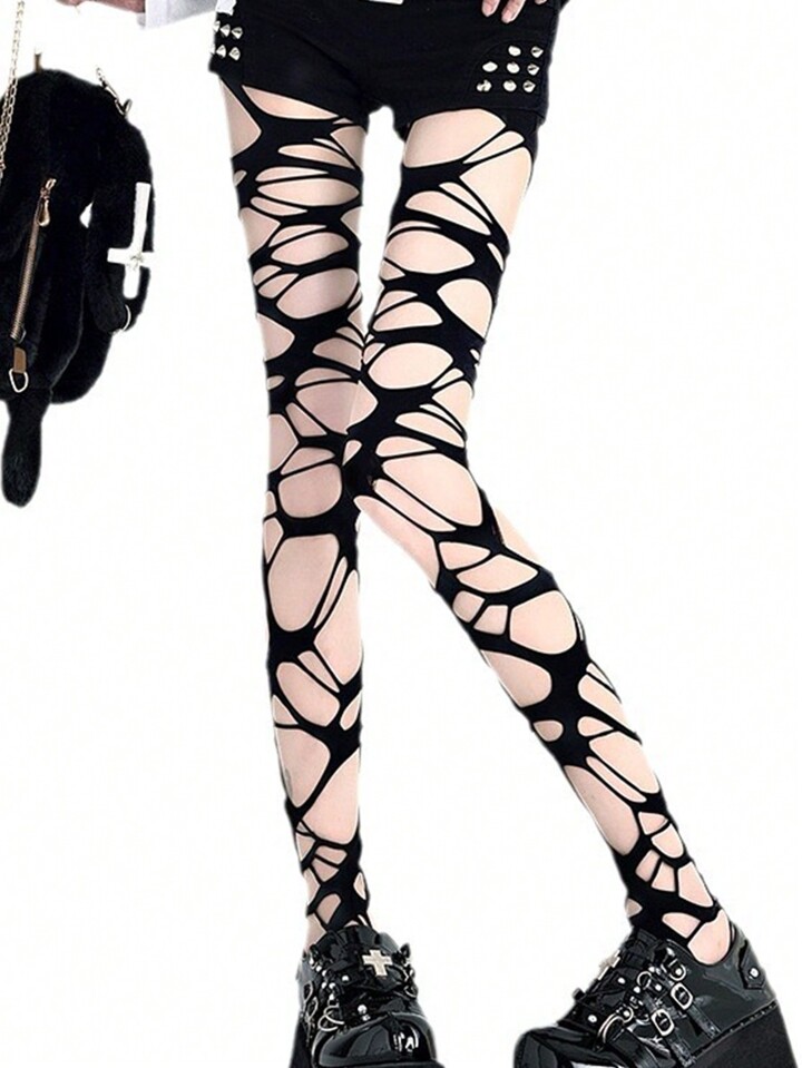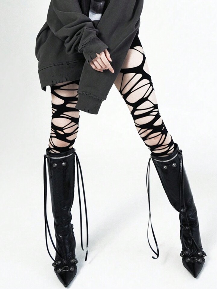 Goth Calcetines con estilo gótico punk asimétrico Y2k con agujeros para mujeres, medias sexys caladas