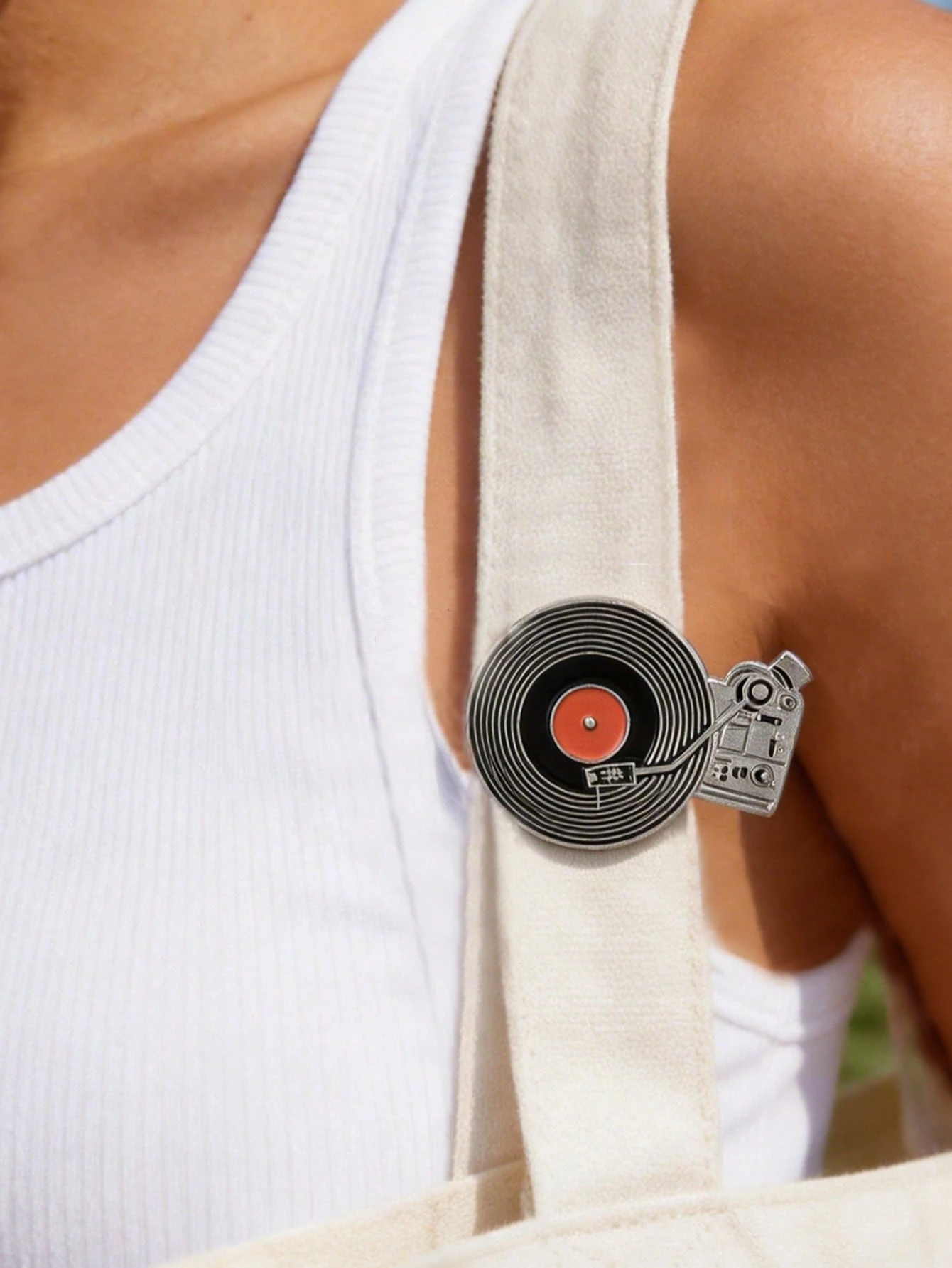 QIHOO 1 pieza Alfiler de solapa de metal con diseño de tocadiscos de vinilo vintage para amantes de la música, insignia de cuidado personal, broche de moda para mochila, ropa, joyería, bolso, regalo de graduación