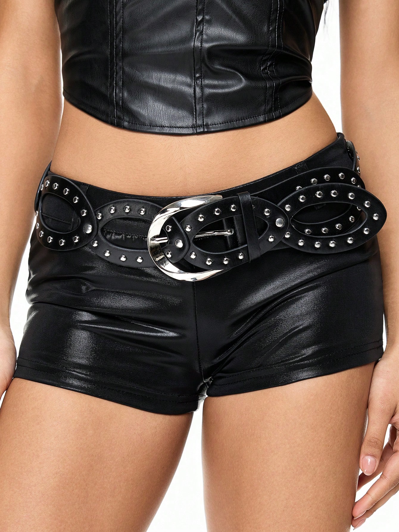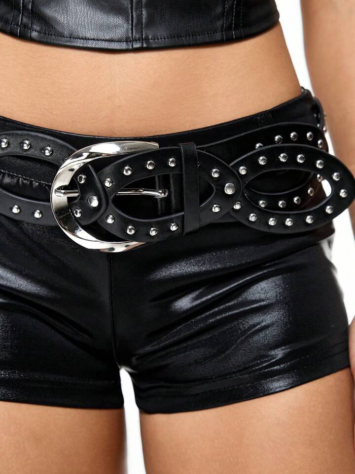 ROMWE Avant 1 pieza Cinturón decorativo de mujer con hebilla ovalada hueca de metal negro en forma de seta, apto para vestidos, jeans, shorts, uso diario, estilo gótico