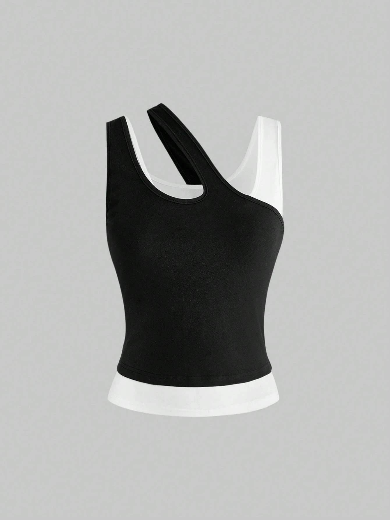 ROMWE Avant Set de 2 tops de tirantes con diseño minimalista y de contraste