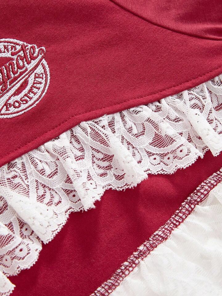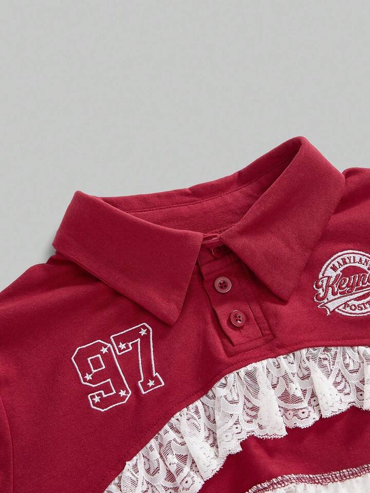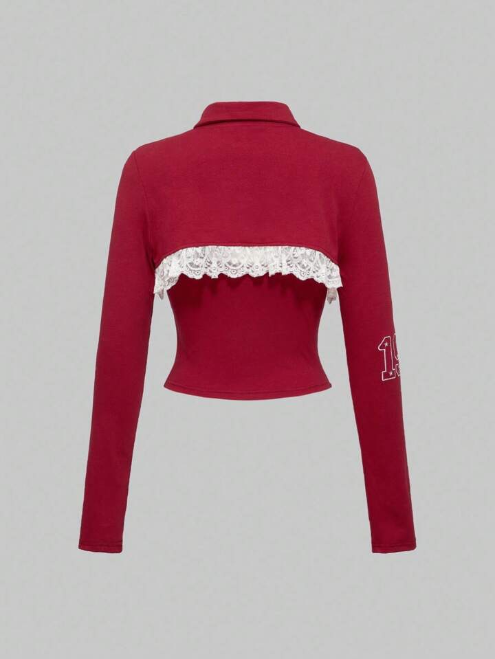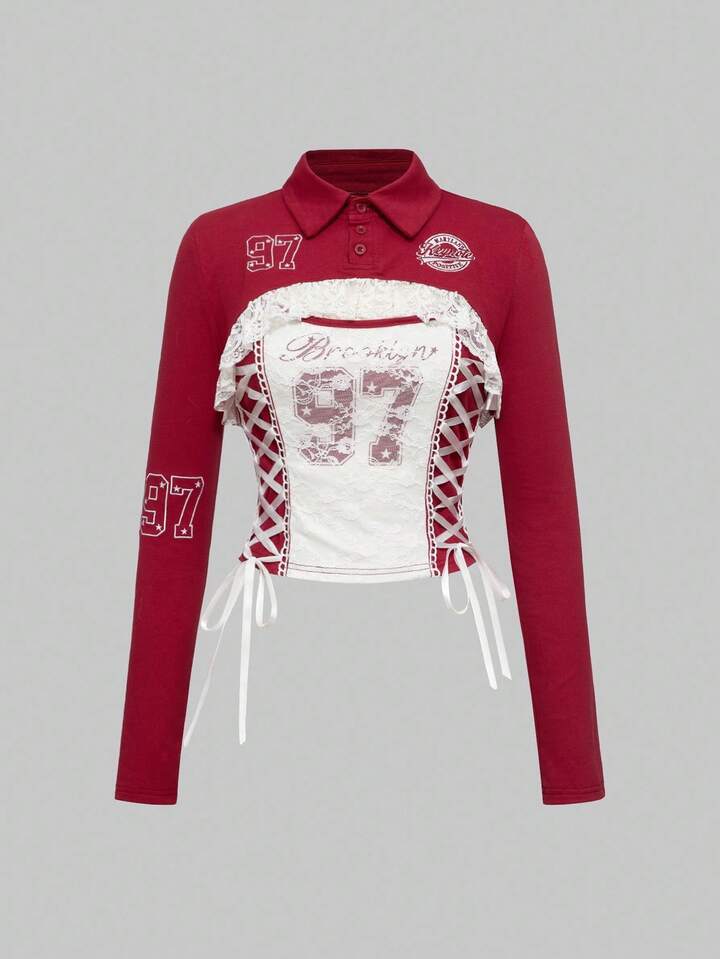 ROMWE Avant Set de 2 piezas con top de tirantes estilo deportivo vintage y top de manga larga con parche de encaje y bordado de números