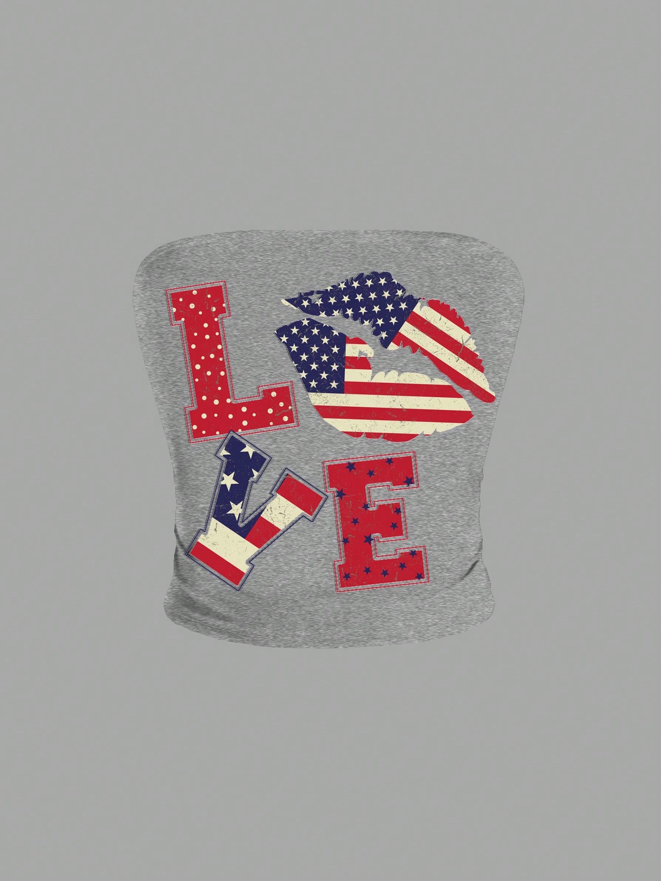 ROMWE Avant Parte superior corta con estilo de mujer sexy de Estados Unidos de estilo vintage y urbano con estampado de bandera, amor y labios para el 4 de julio
