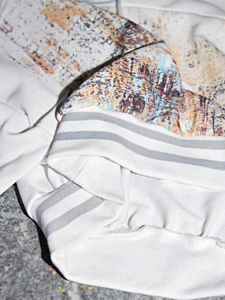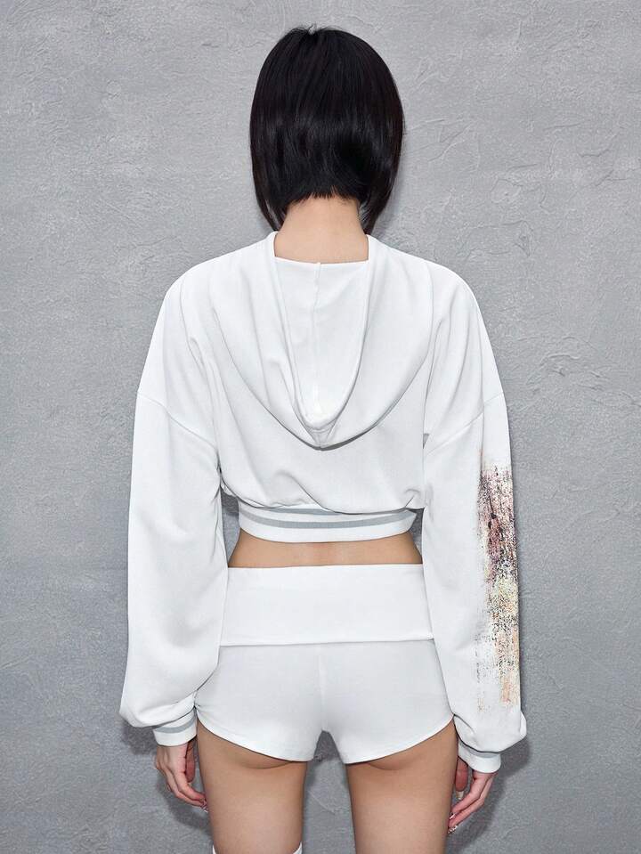 ROMWE Avant Sudadera corta con efecto de óxido y estampado numérico de vanguardia