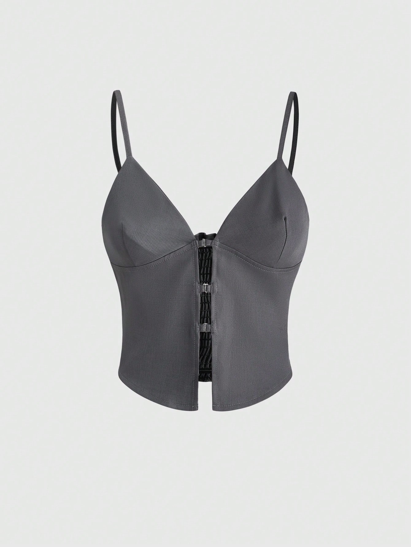 ROMWE Avant Camiseta sin mangas escotada con diseño hueco y cuello en V profundo, sexy para el verano