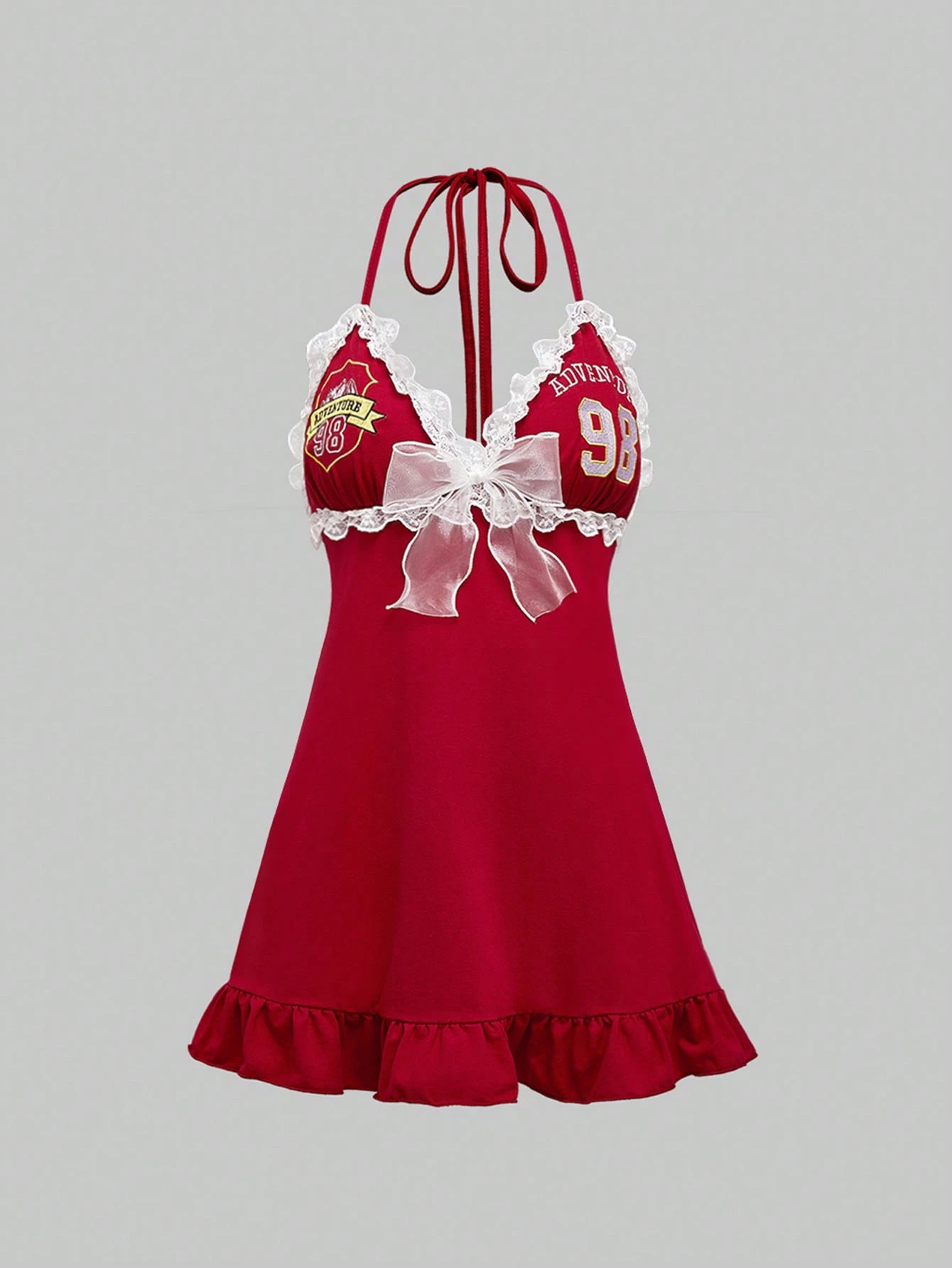 ROMWE Avant Vestido mini sexy de mujer con abertura en la espalda, bordado y ribete de encaje en estilo retro de vanguardia
