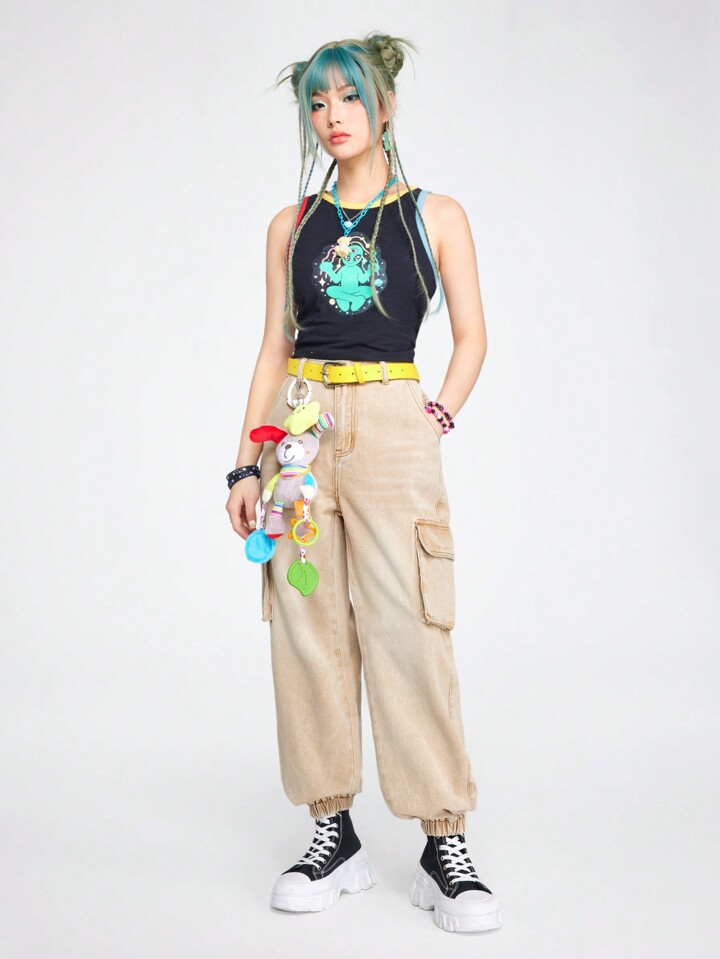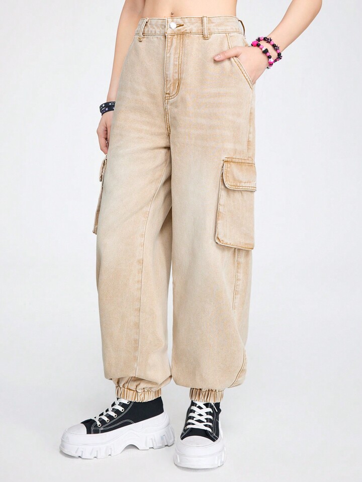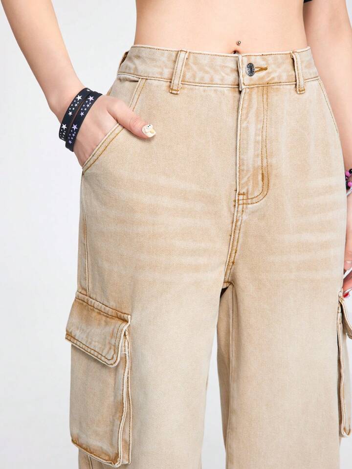 ROMWE Avant Vaqueros Casuales Cargo Tela Estrecha Para Mujeres