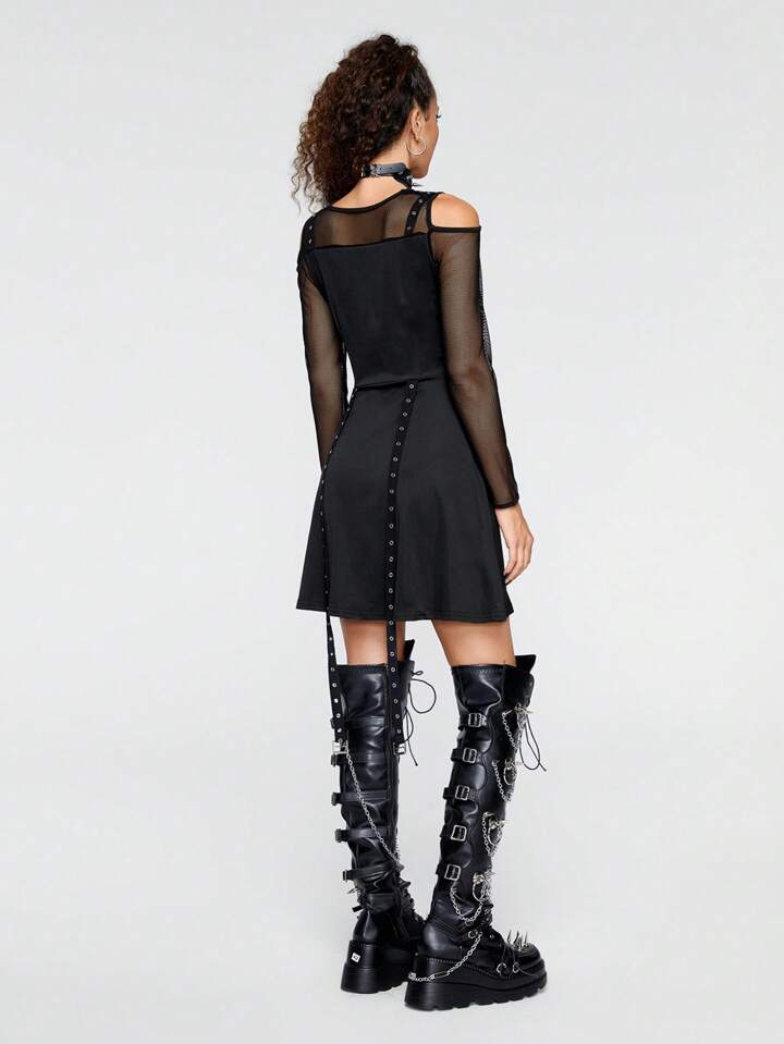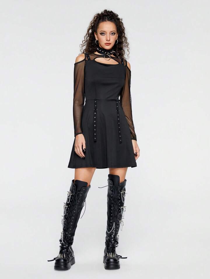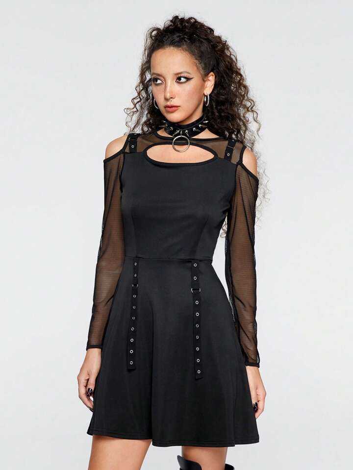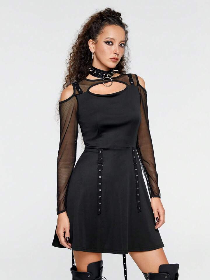 ROMWE Avant Vestido de malla en contraste con abertura de hombros descubiertos