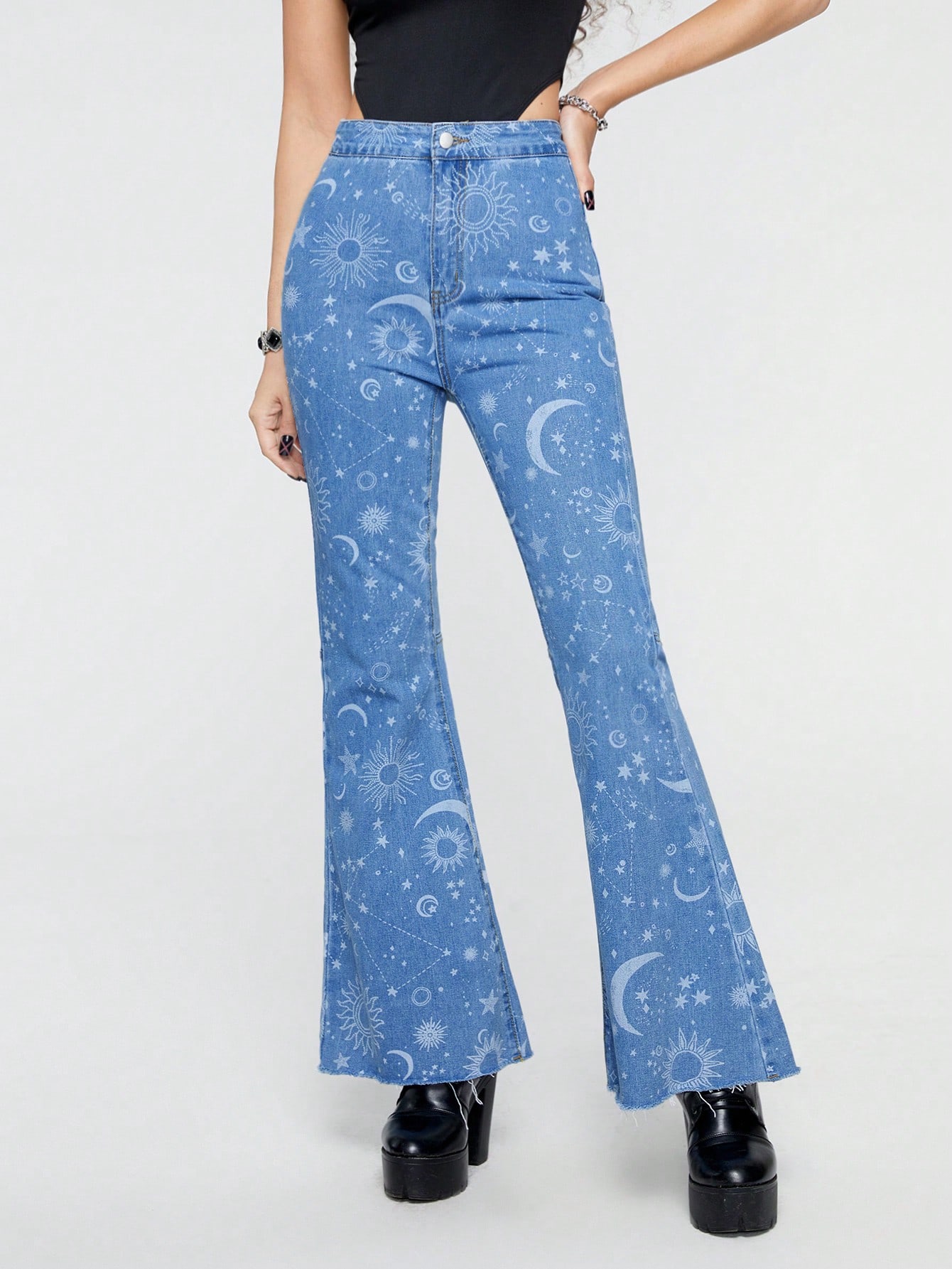 ROMWE Avant Jeans de pierna amplia con estampado de sol y luna