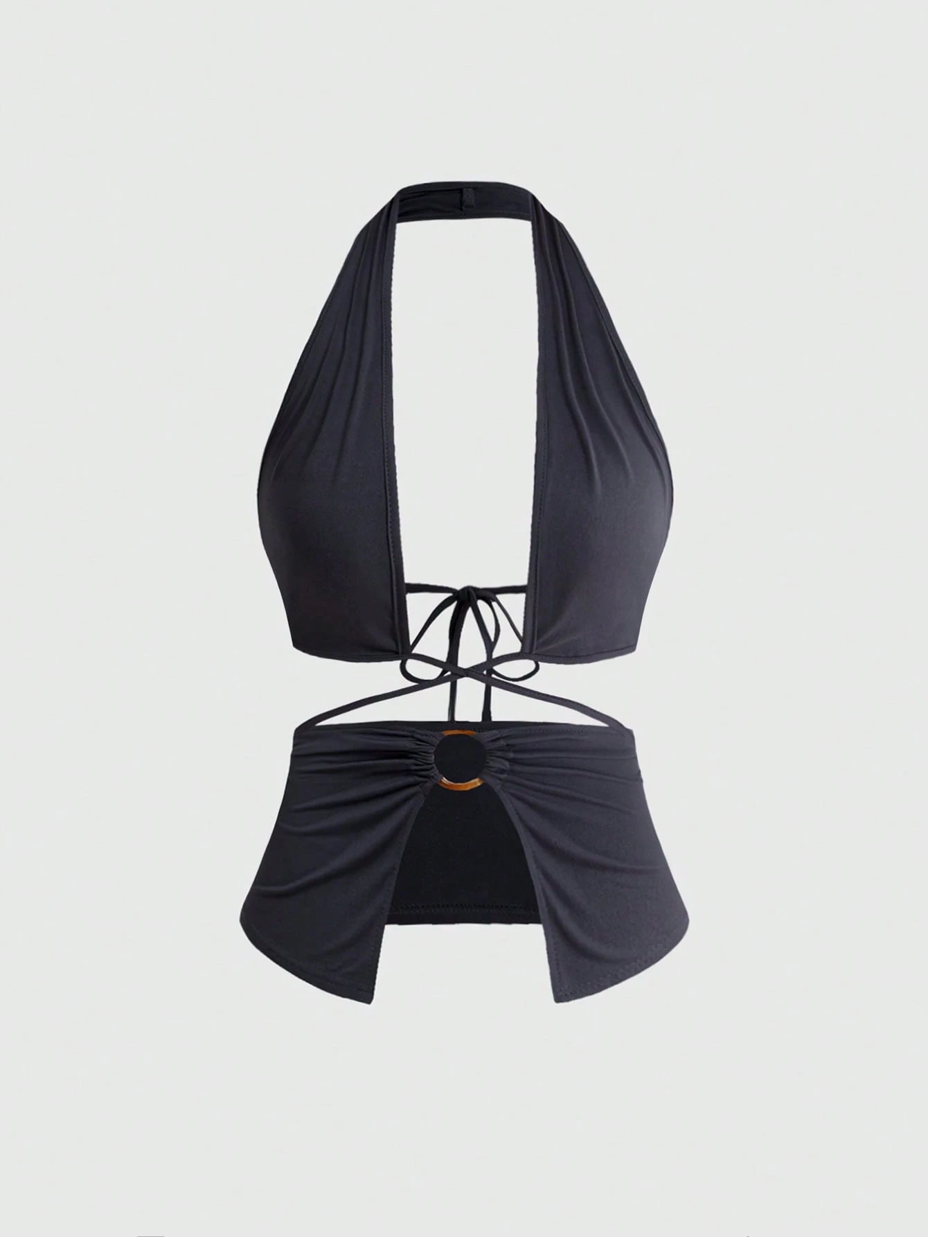 ROMWE Avant Camiseta sin espalda con escote en V profundo y lazo para mujer
