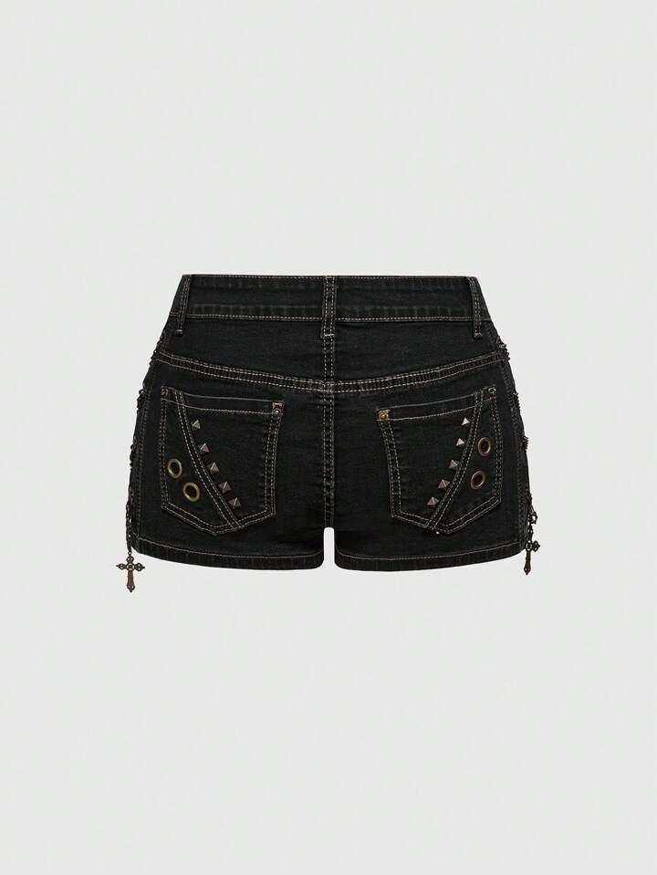 ROMWE Avant Shorts minifalda de cintura baja con decoración de cruz de metal lavado en estilo vintage desgastado