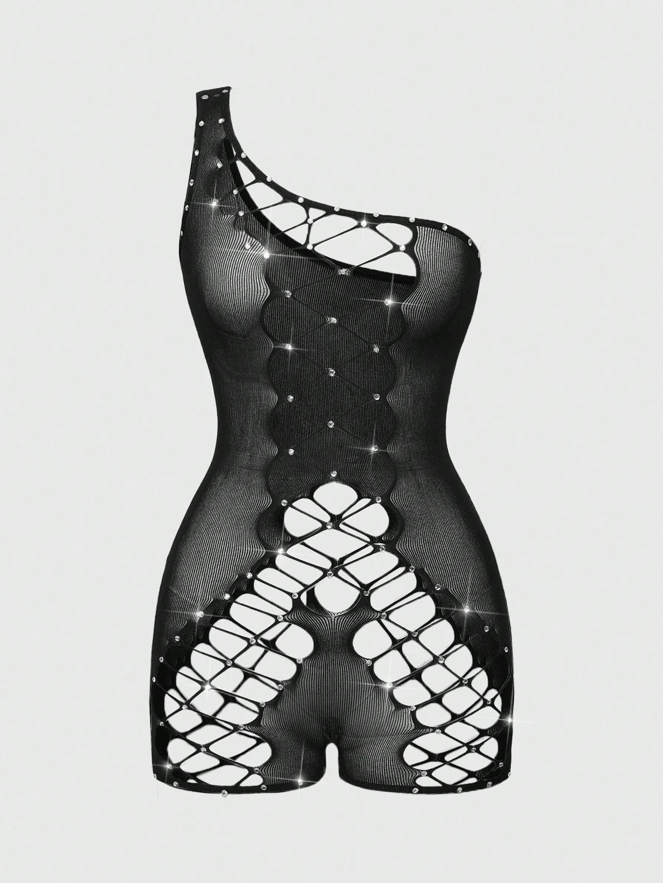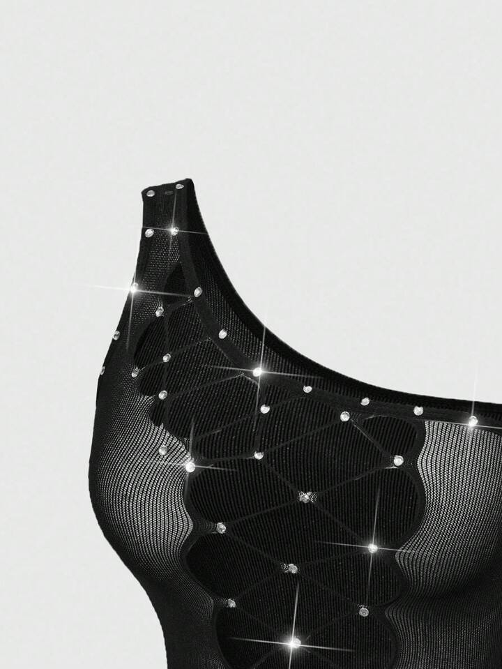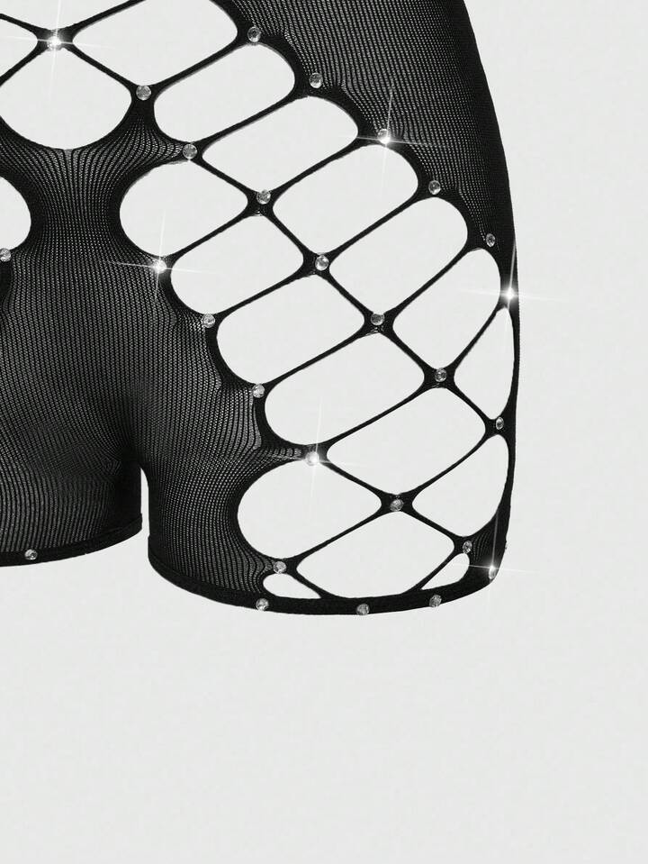ROMWE Avant Mono sexy con decoración de rhinestones y malla elástica de alta calidad con estilo de vanguardia para mujeres