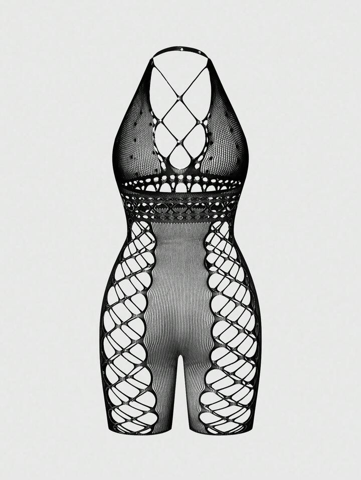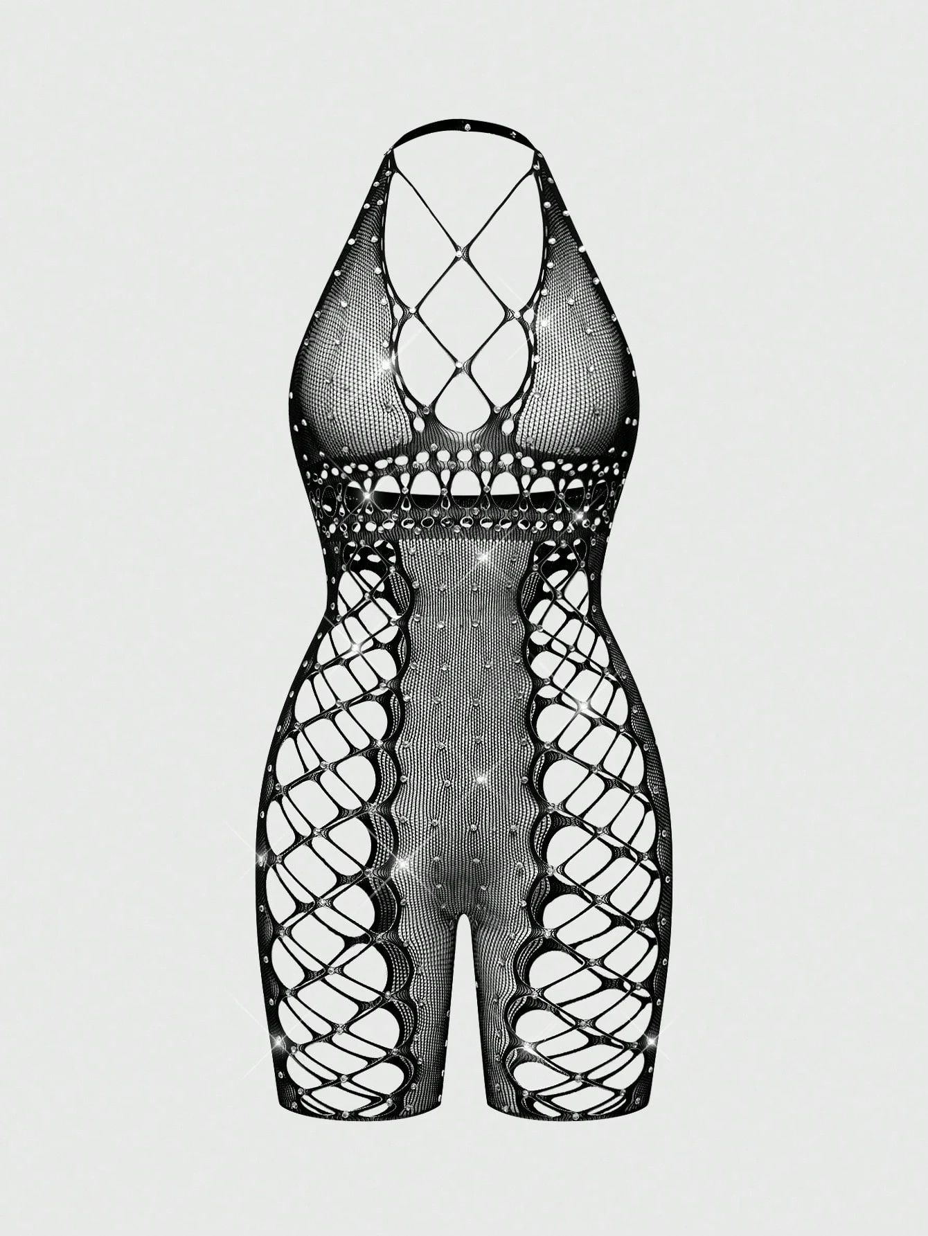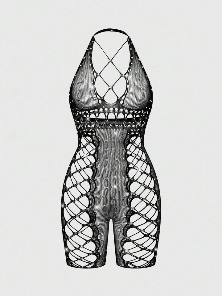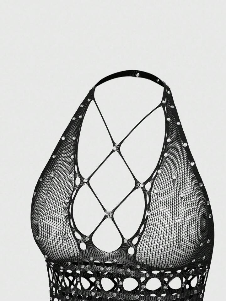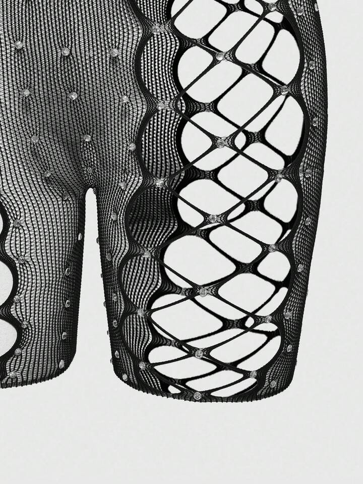 ROMWE Avant Mono sexy con decoración de rhinestones y malla elástica de alta calidad con estilo de vanguardia para mujeres