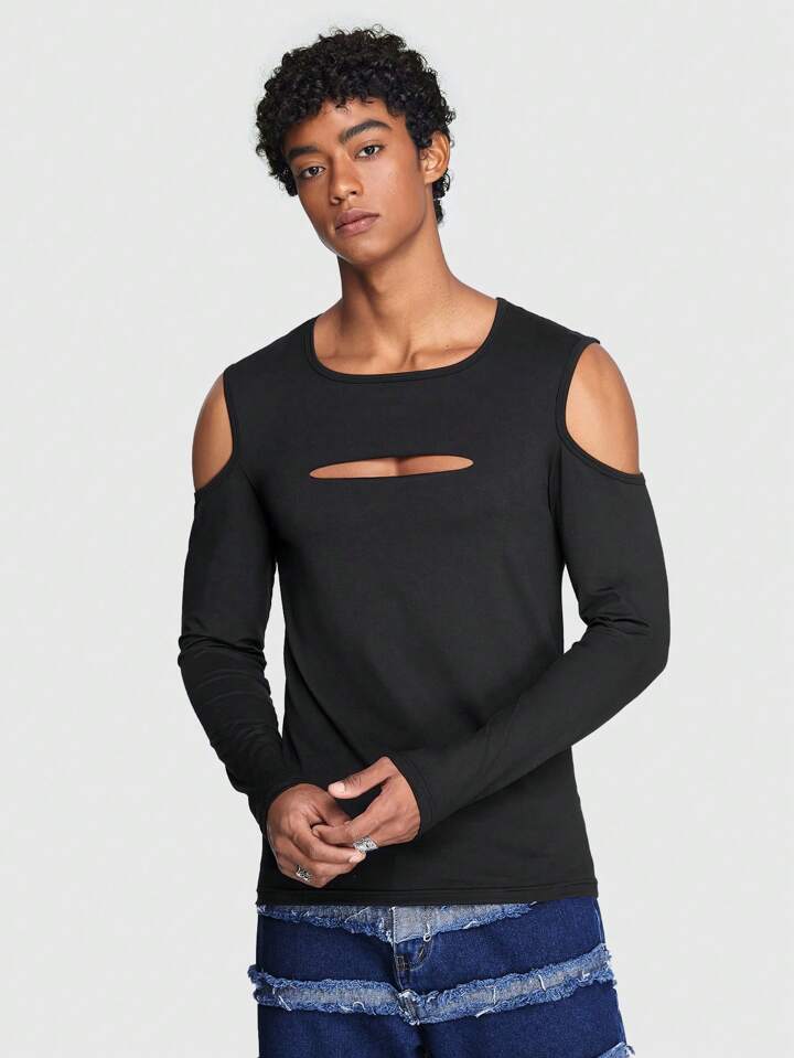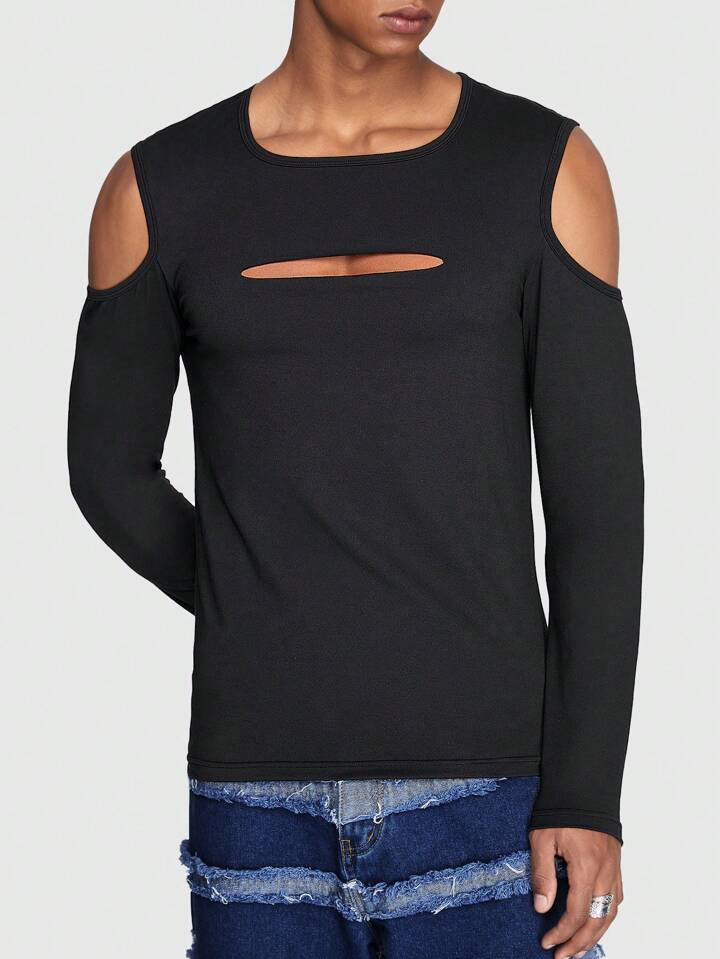ROMWE Avant Hombres Camiseta de hombros descubiertos con abertura