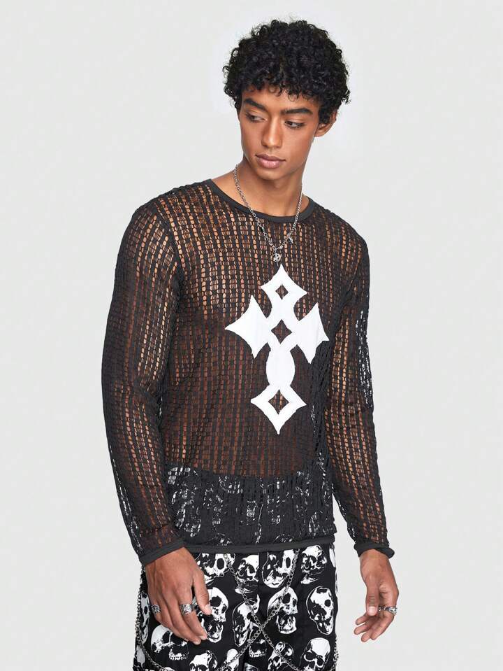 ROMWE Avant Hombres Camiseta cruzado con estampado de malla