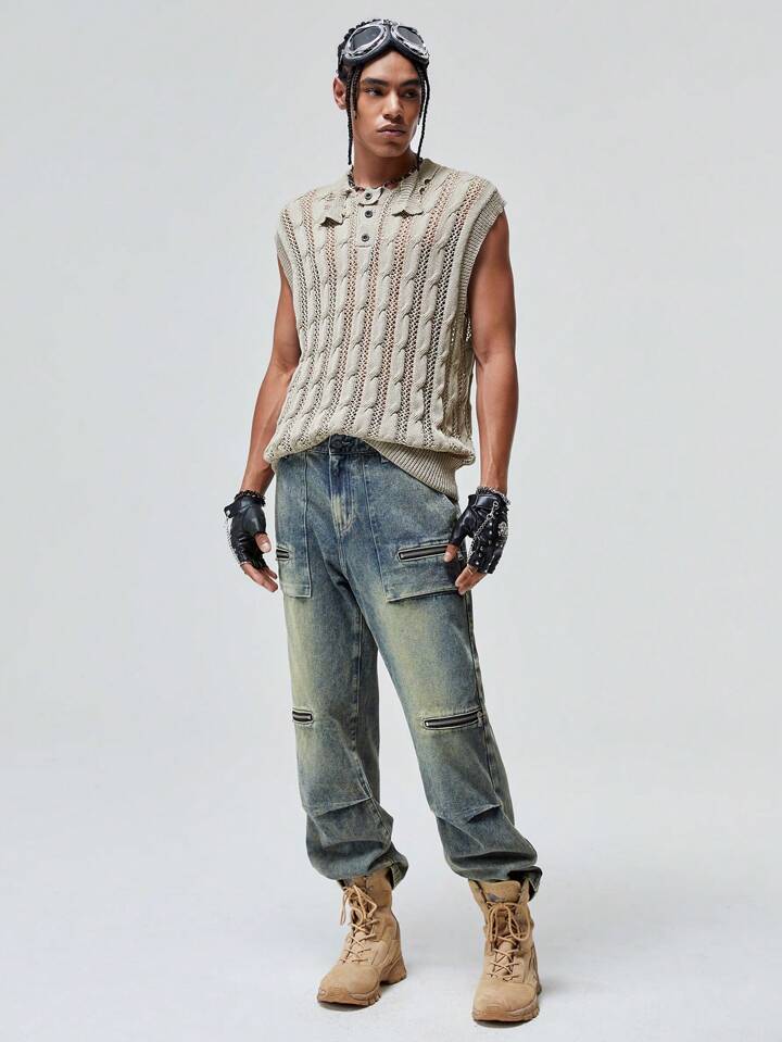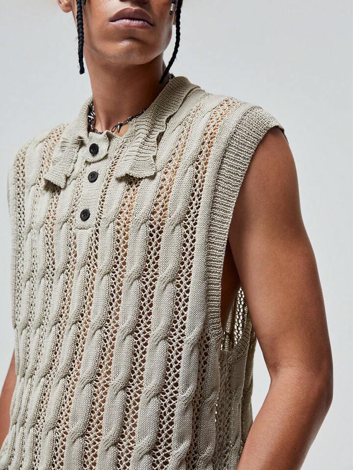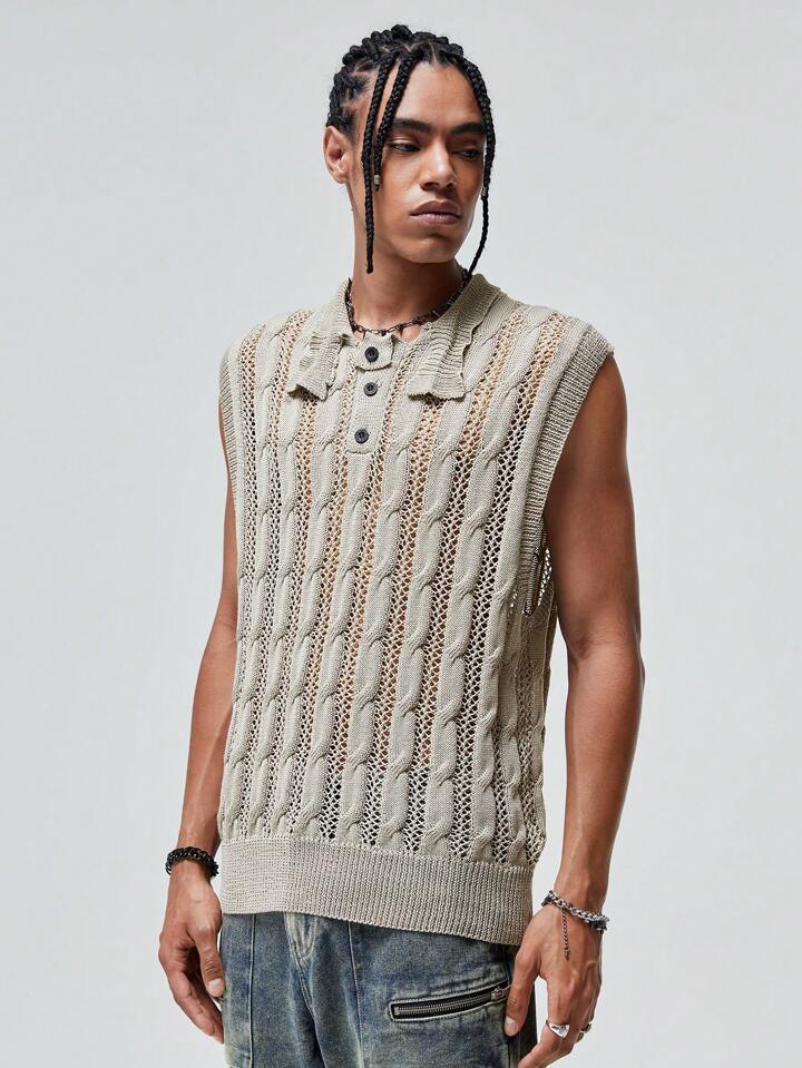 ROMWE Avant Hombres Chaleco de punto desgarro tejido de cable