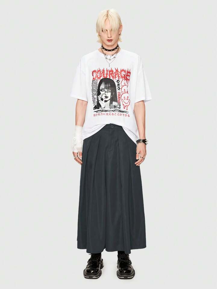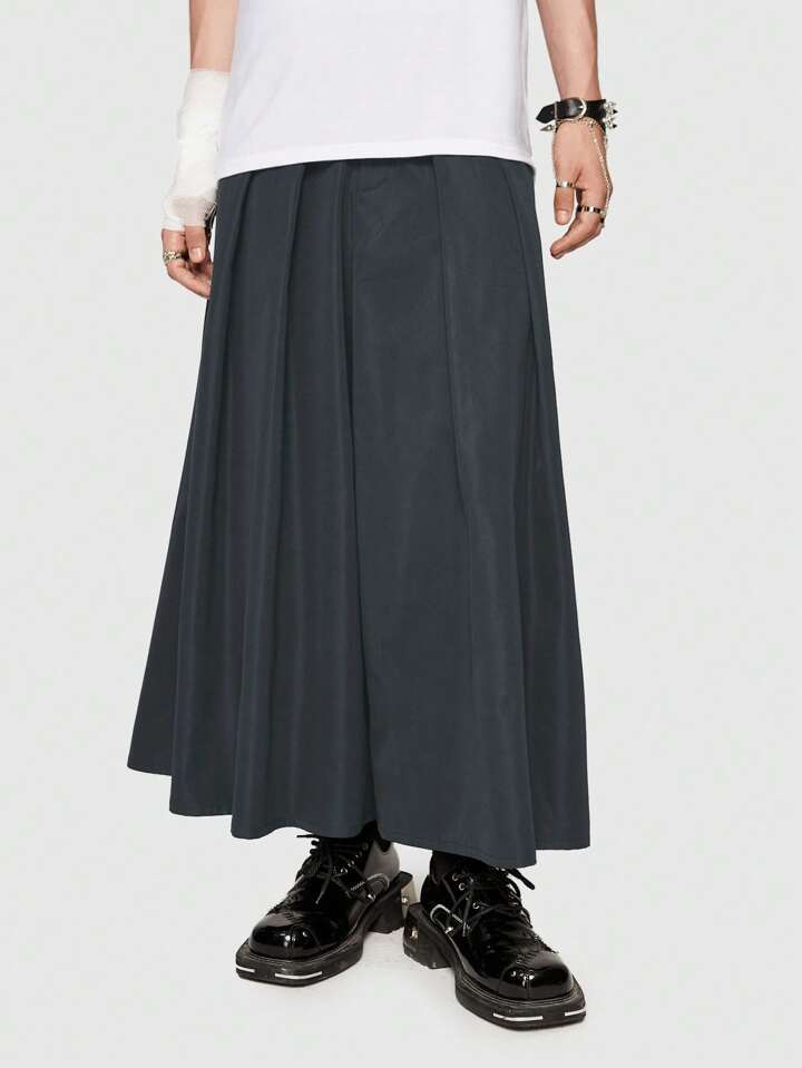 ROMWE Avant Hombres Pantalones de pierna ancha unicolor con fruncido