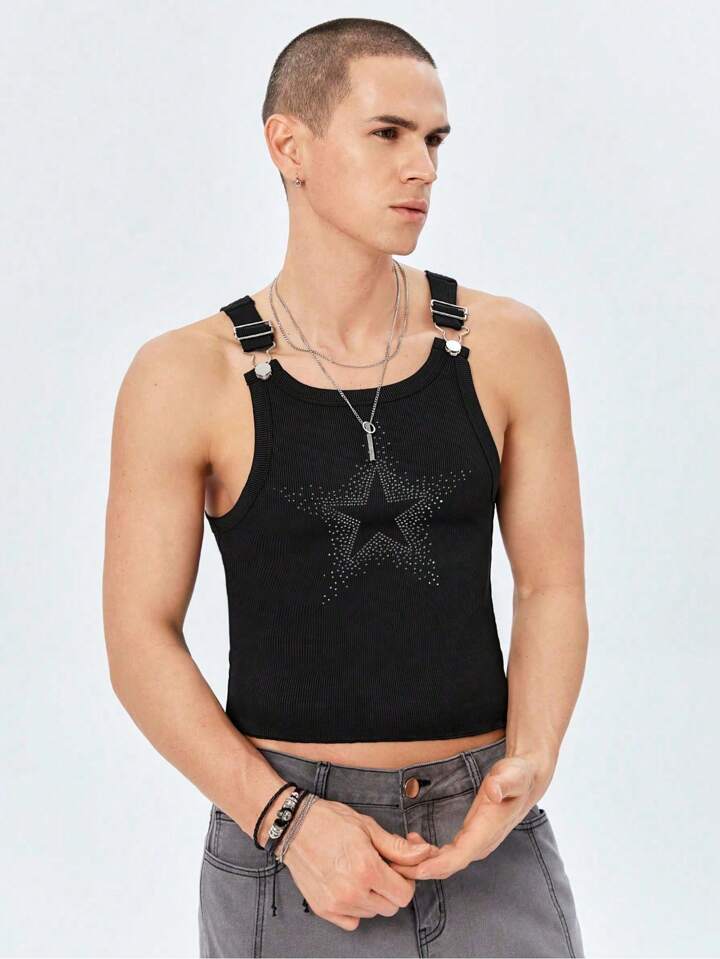 ROMWE Avant Hombres Top tank con estrella con diseño de diamante de imitación