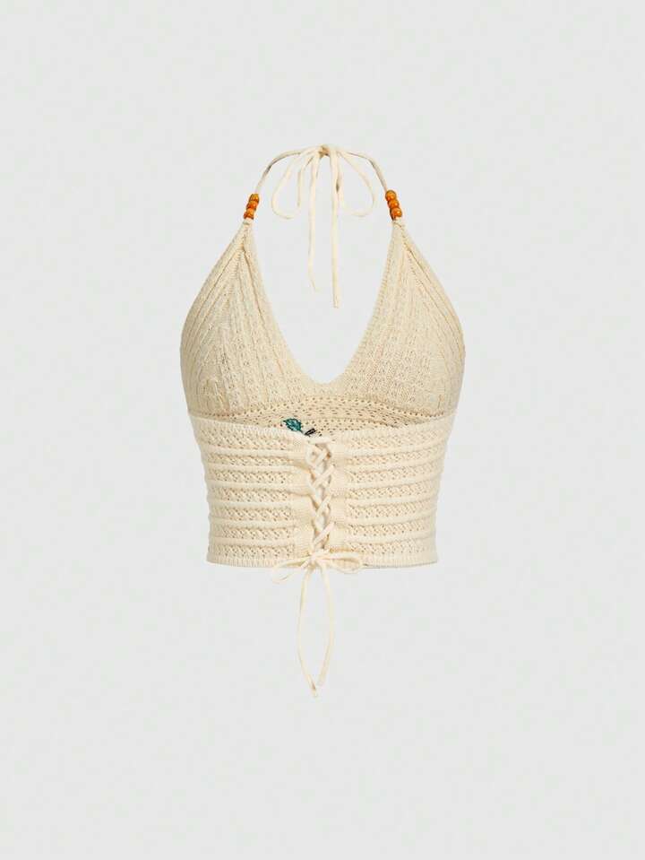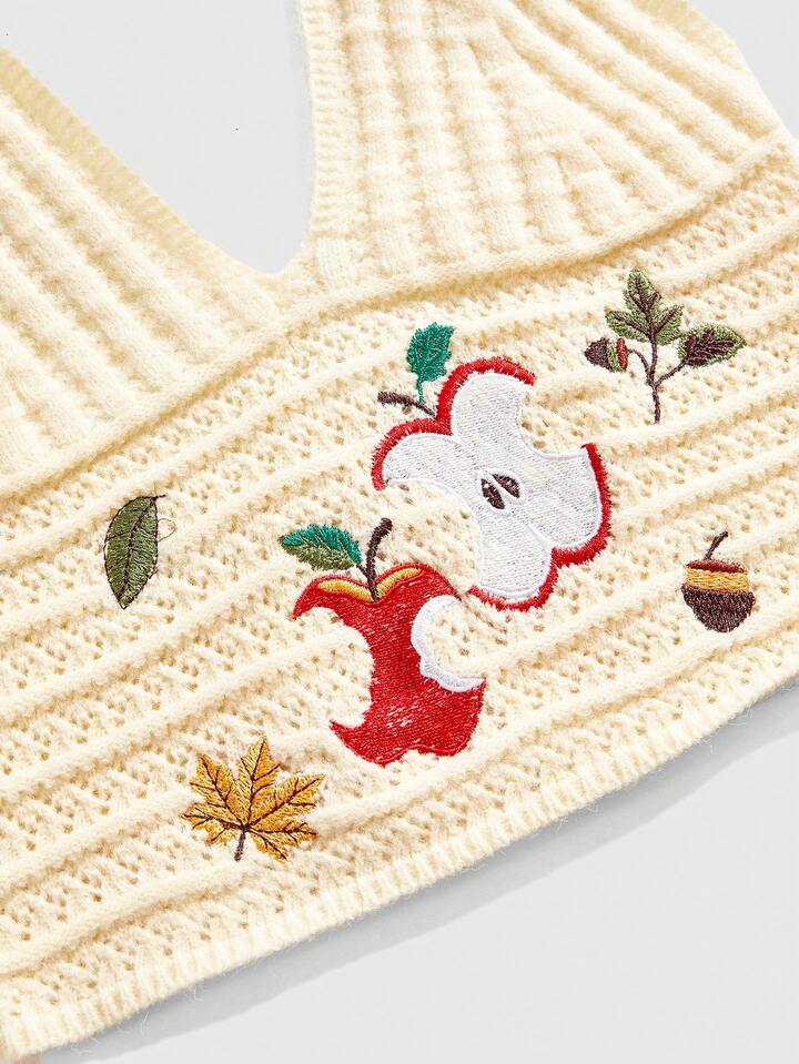 ROMWE Avant Blusa de punto con bordado de manzana, estilo dulce y casual para vacaciones en la isla