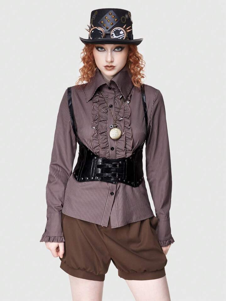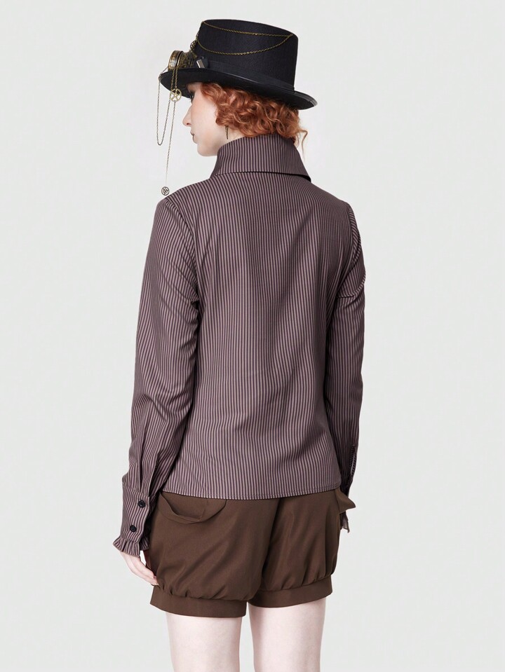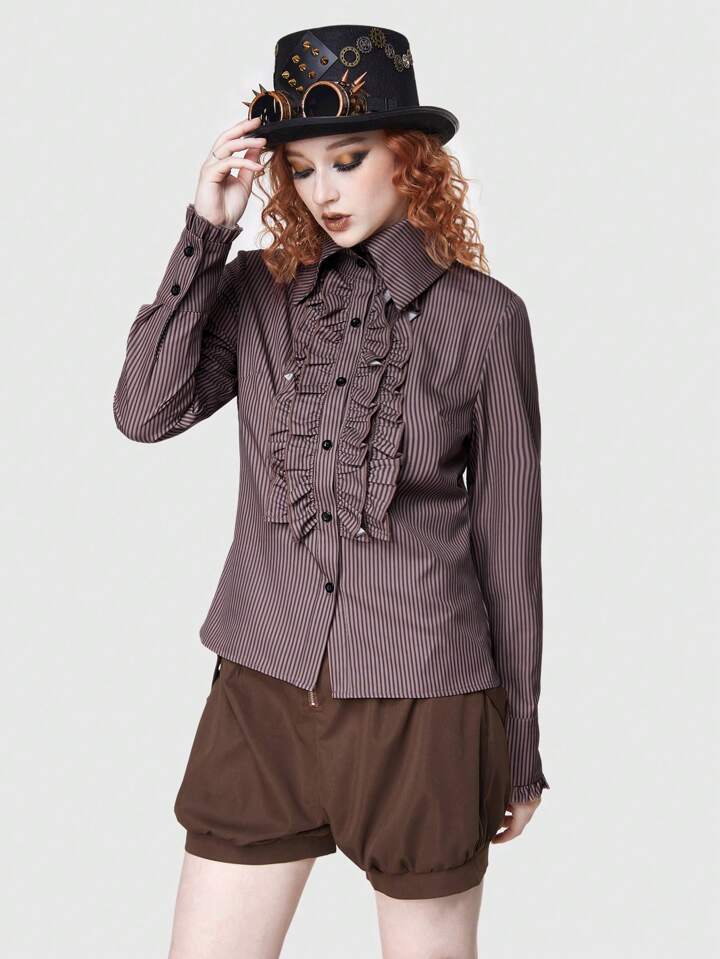 ROMWE Avant Blusa Con Ribete De Encaje A Rayas Para Mujer