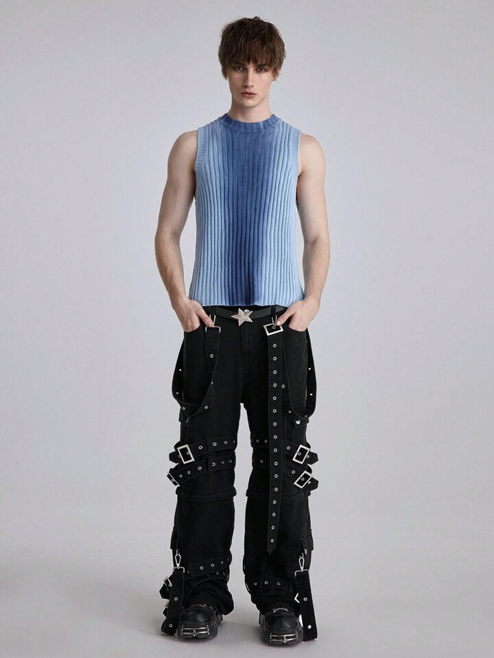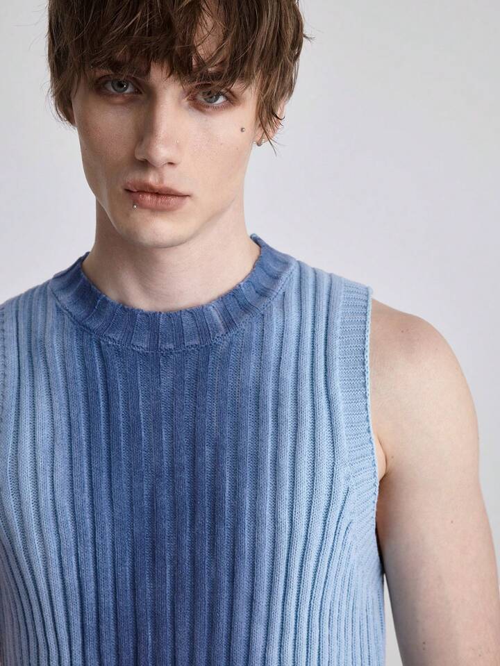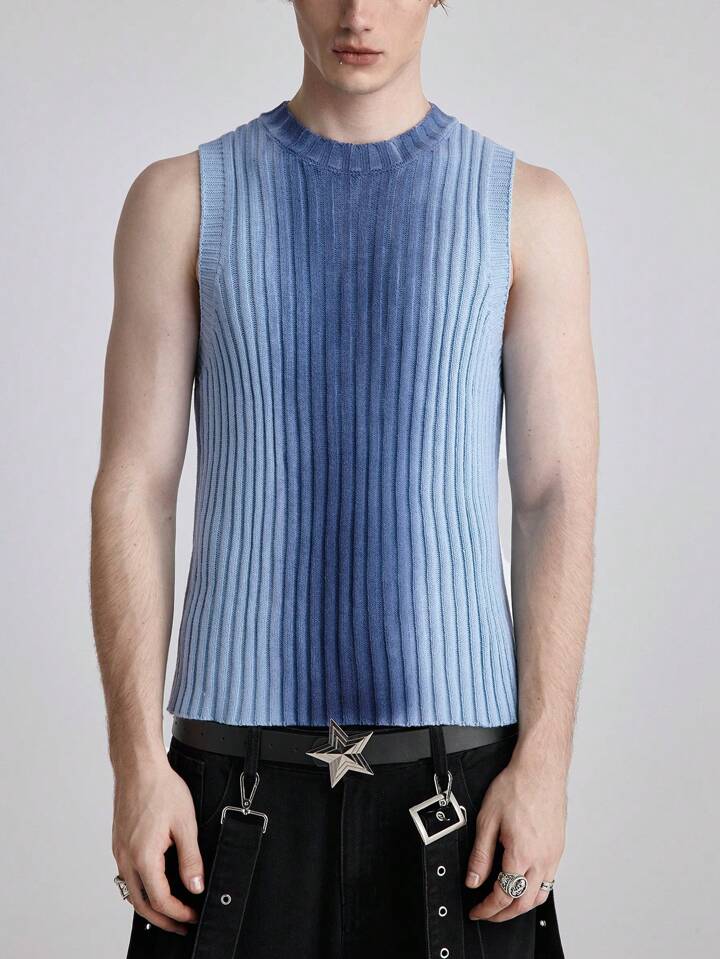 ROMWE Avant Chaleco de punto acanalado degradado para hombre para uso diario, escuela
