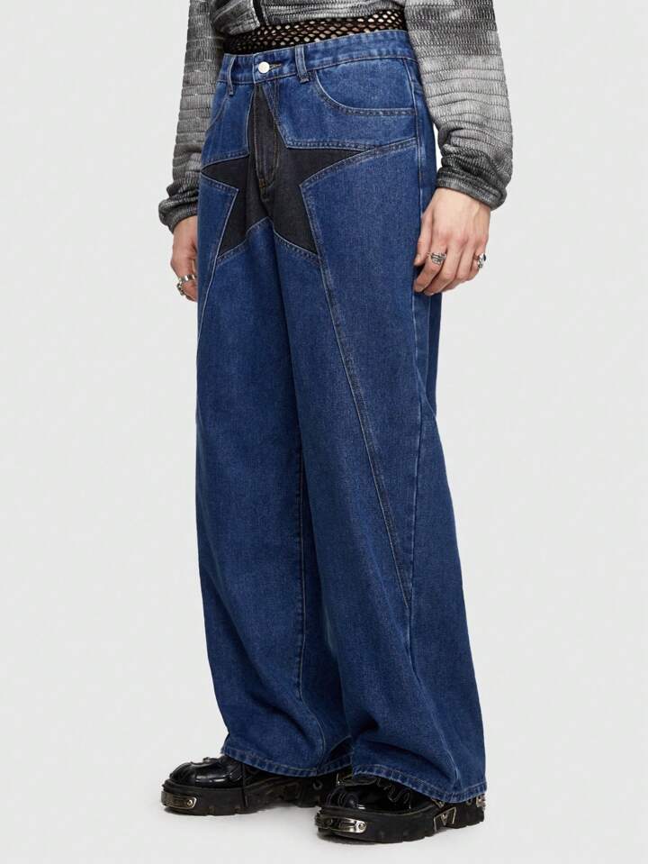 ROMWE Avant Vaqueros Rectos Para Hombres Con Estampado De Estrellas Y Bolsillos Inclinados