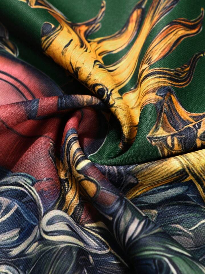 ROMWE Avant Sudadera casual de manga larga con estampado de corazón cruzado para hombres, otoño