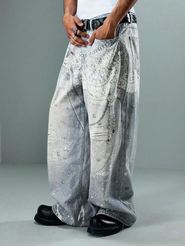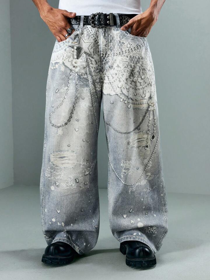 ROMWE Avant Jeans de mezclilla casual con estampado para hombres