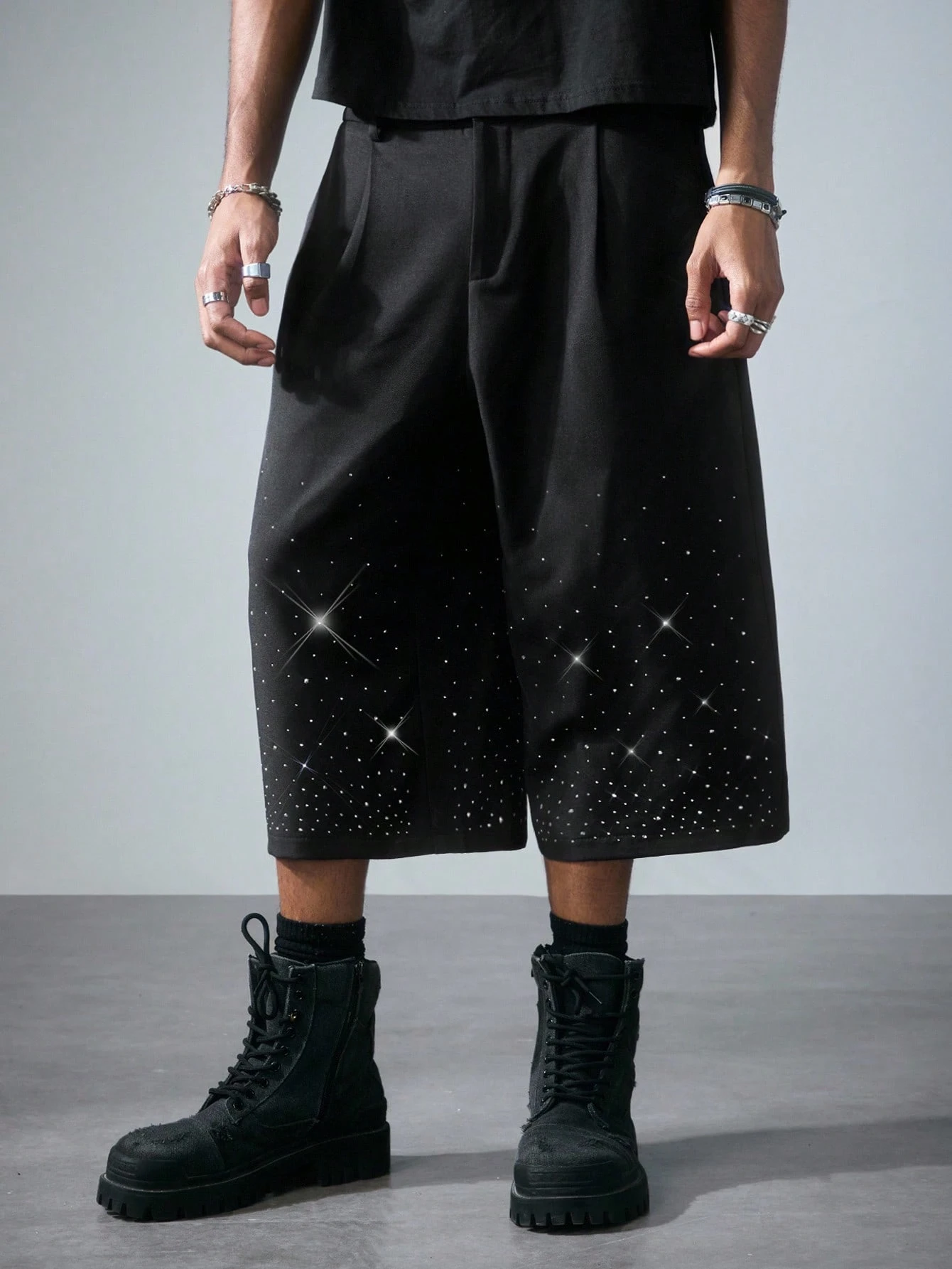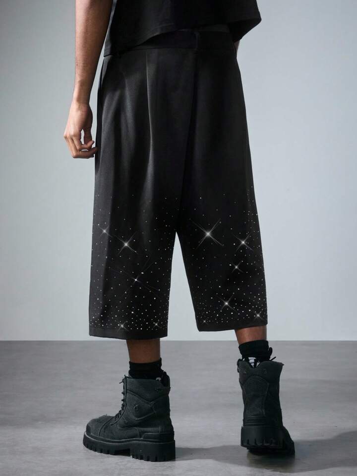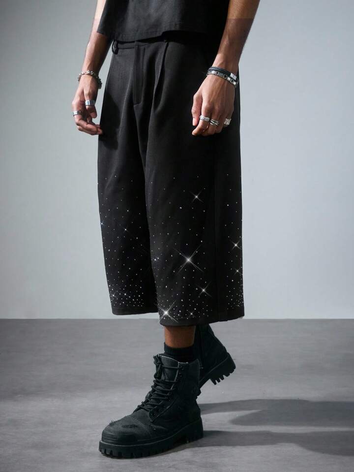 ROMWE Avant Pantalones capri para hombres con aplicaciones de rhinestone, adecuados para primavera y verano