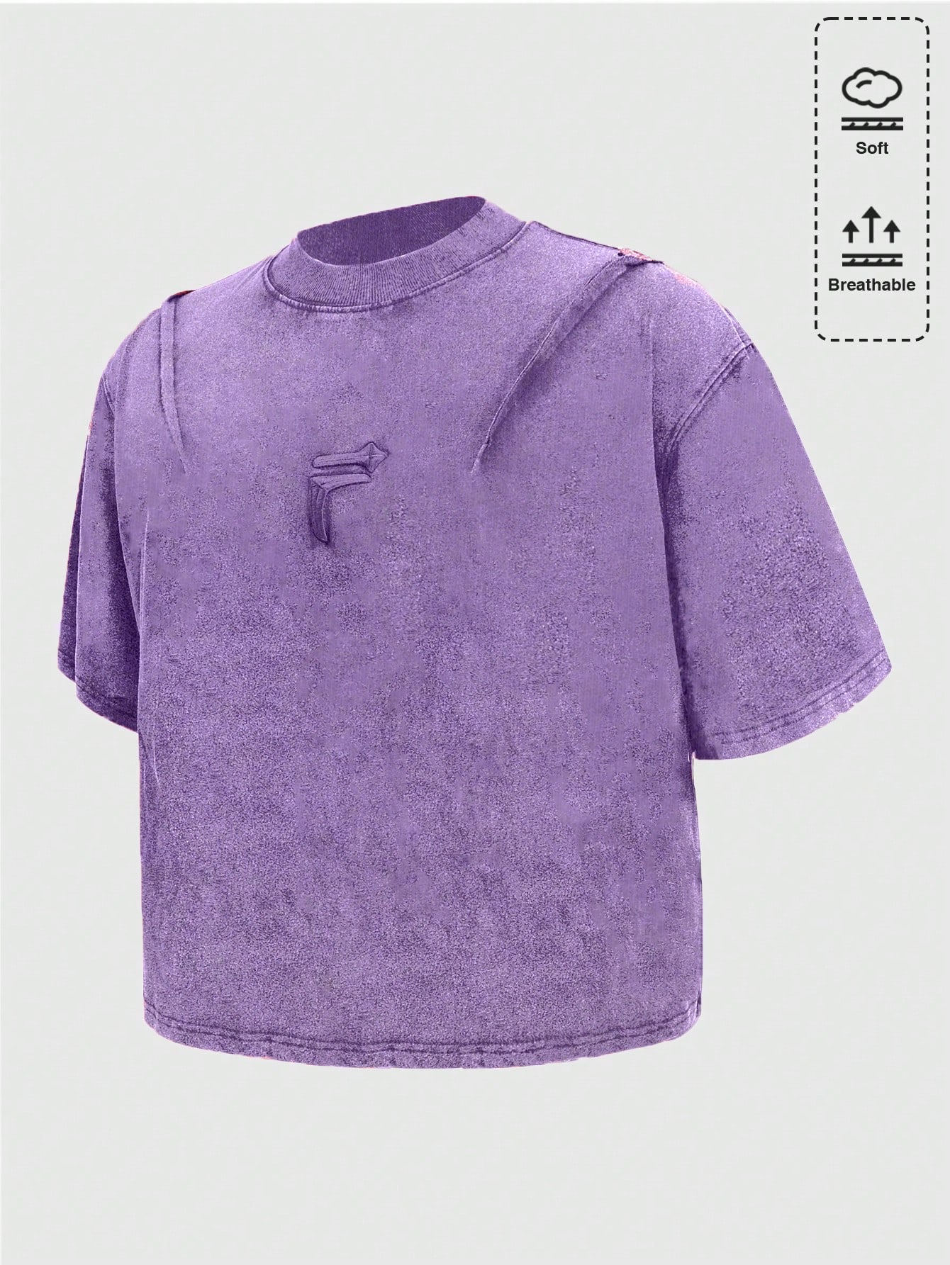 ROMWE Avant Camiseta de manga corta holgada y recortada con bordado para hombres