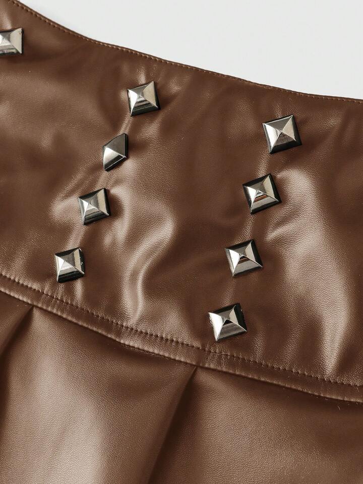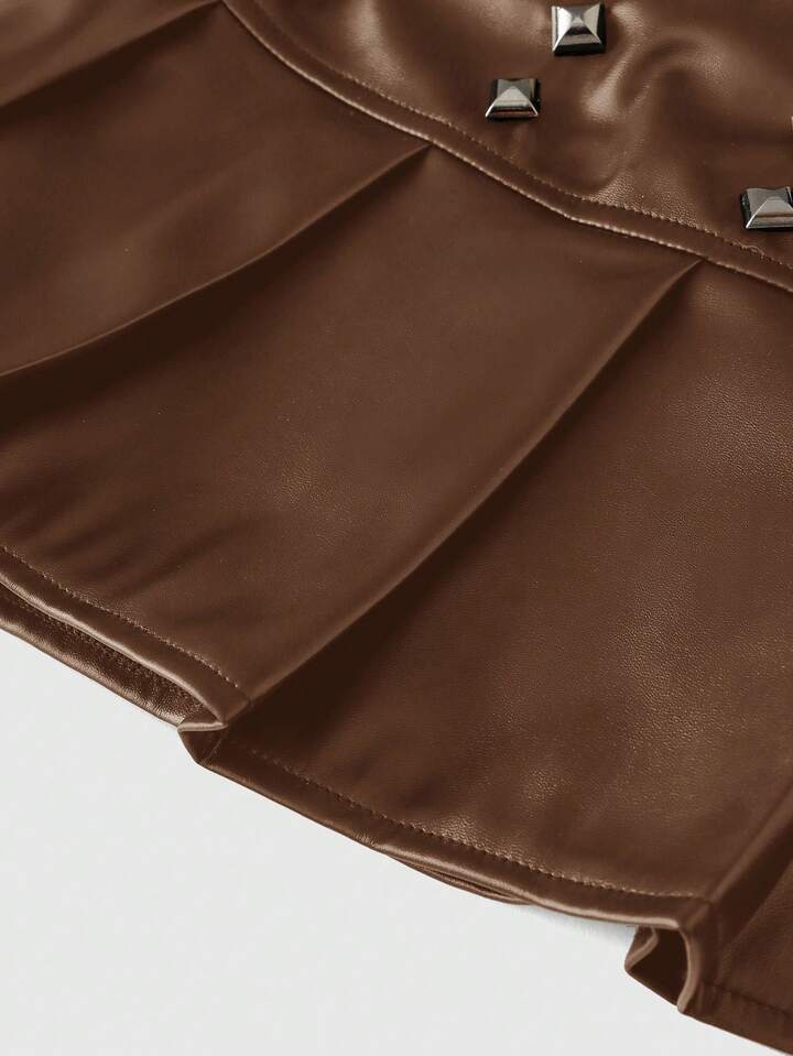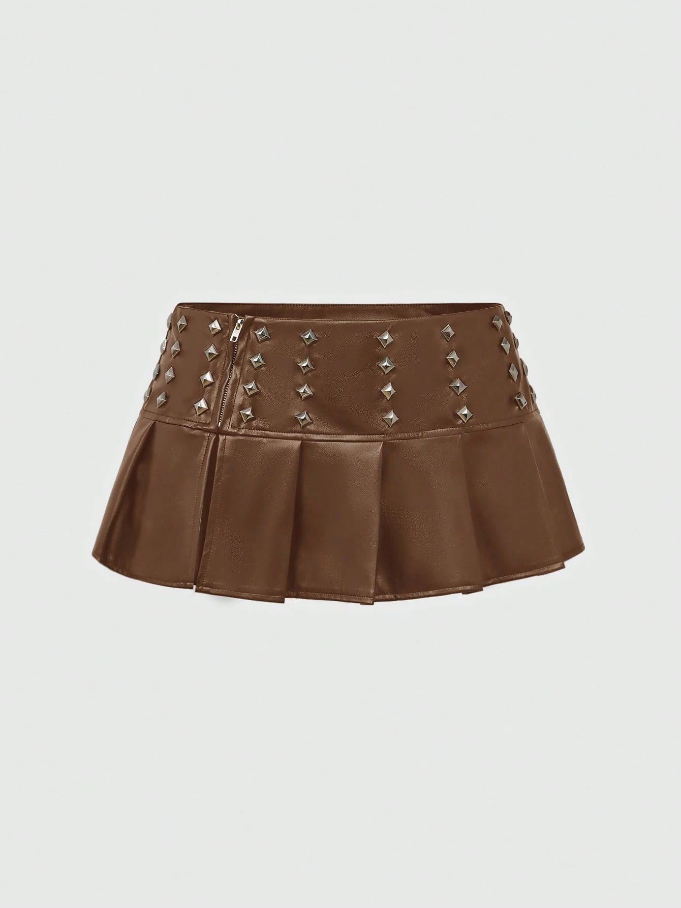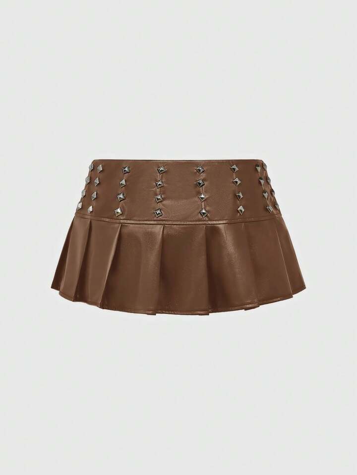 ROMWE Avant Falda plisada de mujer con decoración de remaches de estilo punk para festival de música, de talle ultra bajo
