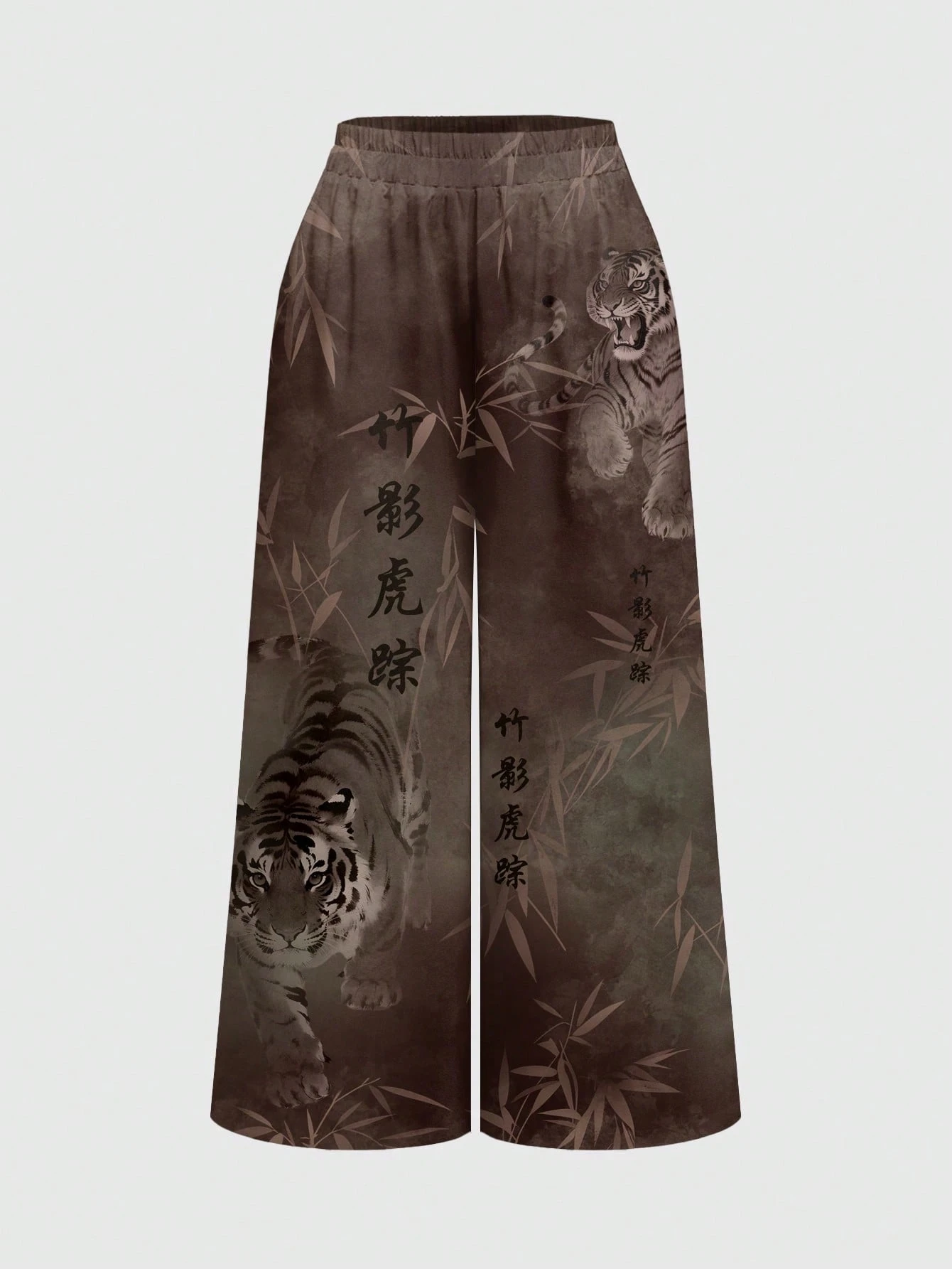 ROMWE Avant Nuevos pantalones casuales de mujer con estampado de tigre y bambú en estilo tie-dye chino
