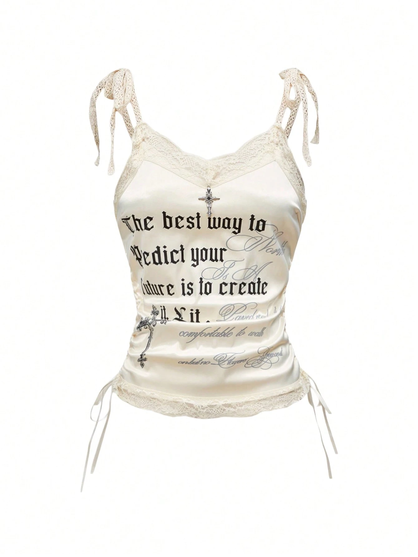 ROMWE Avant Camiseta y top sin mangas de satén con estampado de cruz en fuente gótica vintage para tallas grandes