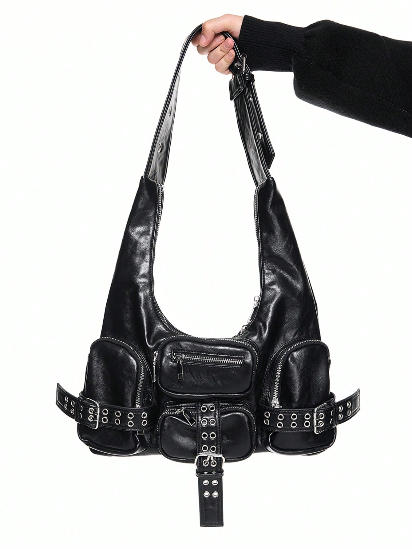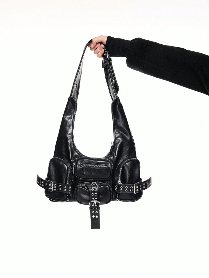 ROMWE Avant Mochila de hombro individual/doble desmontable, de moda retro punk
