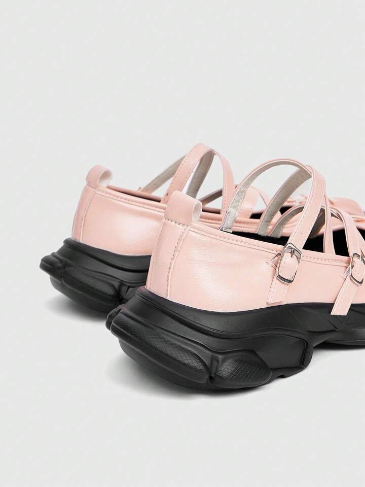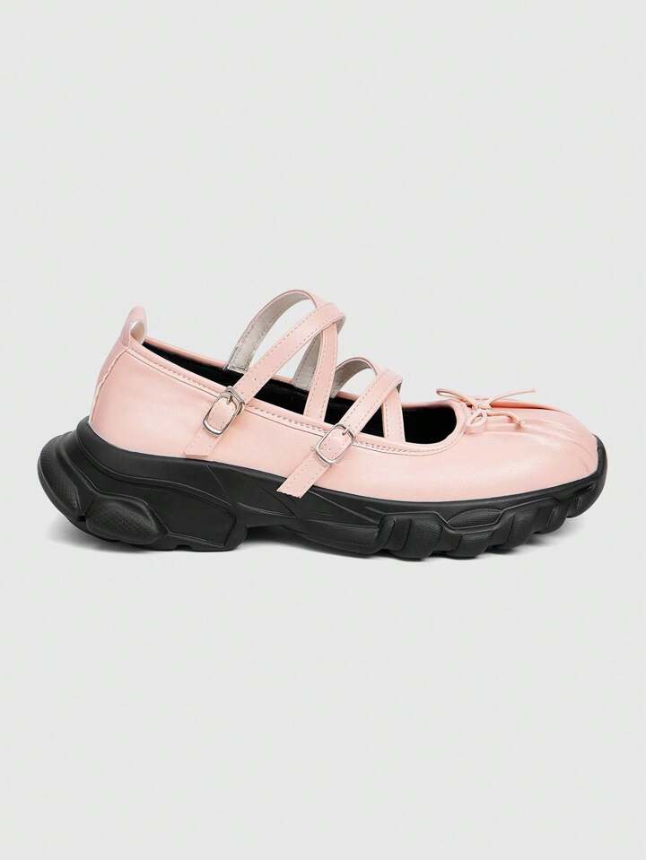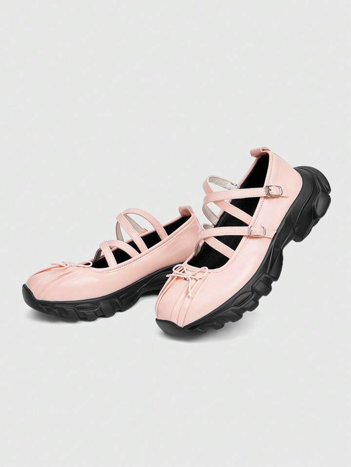 ROMWE Avant Bailarinas de plataforma casual con suela gruesa, lazo y diseño único para mujer - Bailarinas plateadas