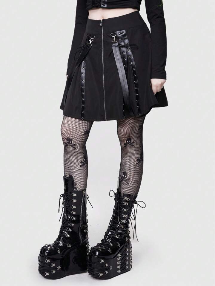 ROMWE Avant Falda Con Detalle De Ojales Metálicos En Color Liso